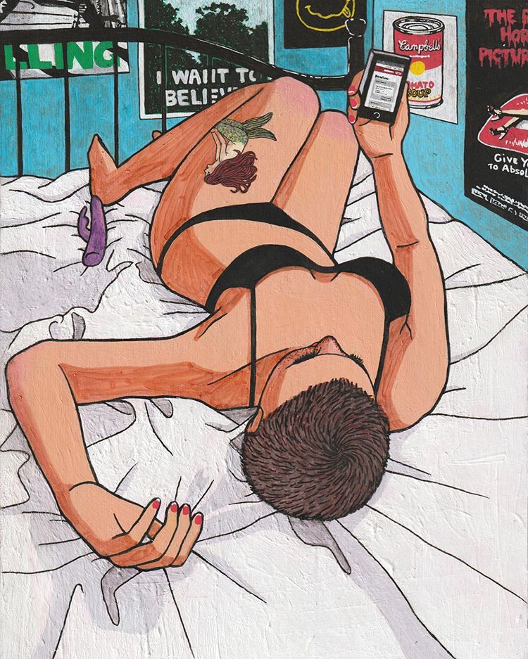 Her work is character-driven and compelling, with images that are in turn funny and strange. Linda’s imagery often evokes questions of mental health, loneliness, and internal dialogue; often women (or, a single woman) are centered.
