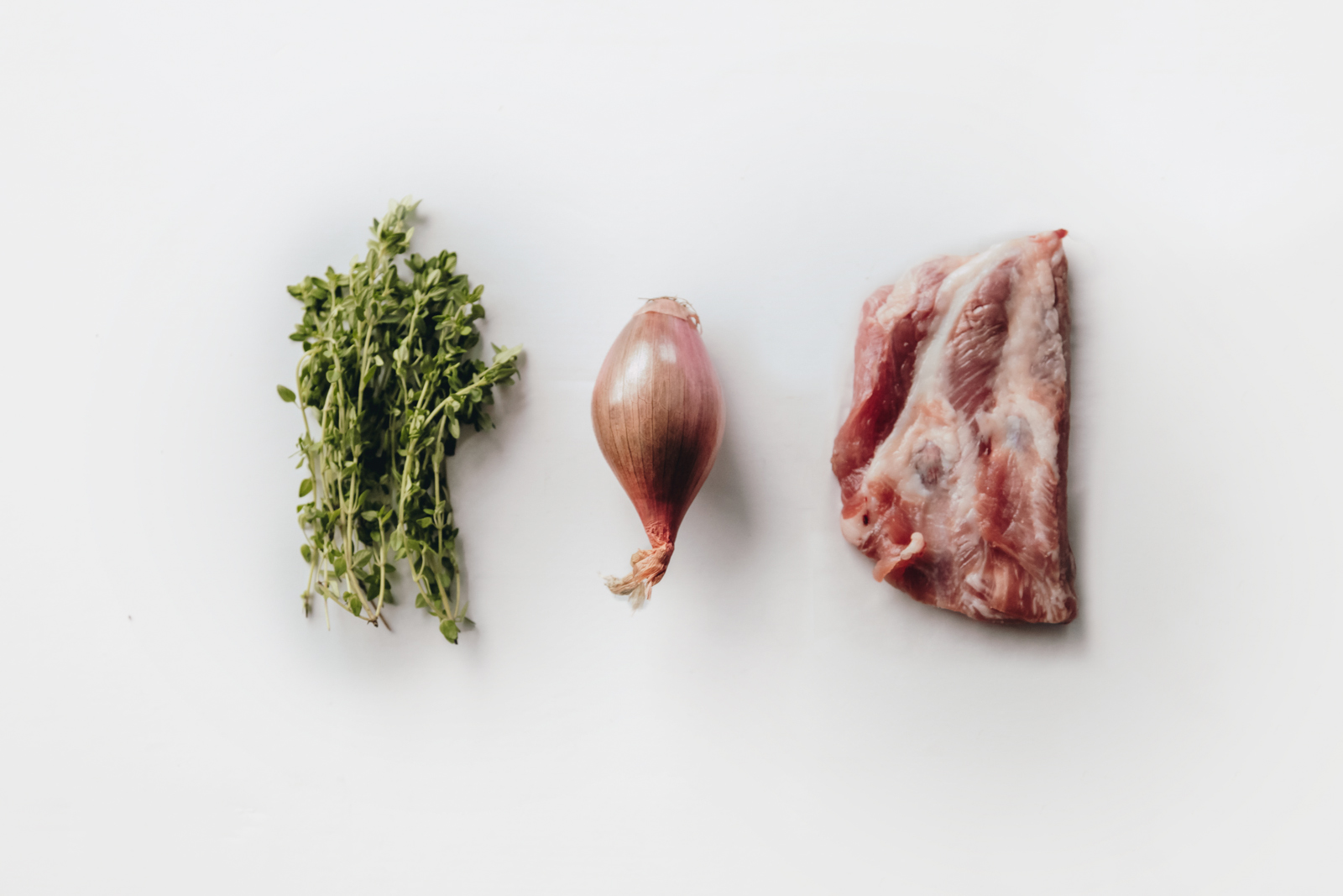 Dice two larger shallots and saute them in a large pot. When the onions are just starting to caramelize, add your roasted pork bones to the pot.