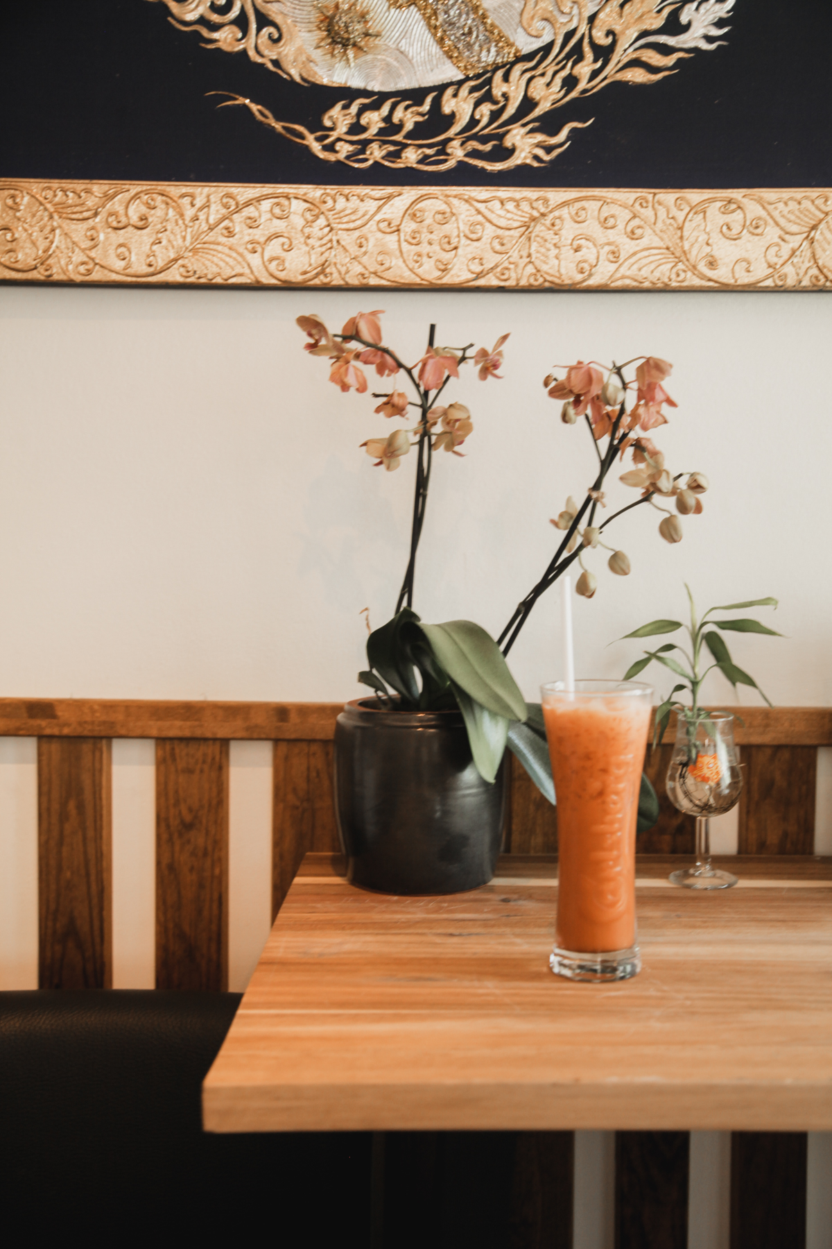 The menu has interesting and lesser-known items on it, like Thai iced tea made with condensed milk. This drink is so popular in Thailand it’s sometimes sold from street vendors poured over crushed ice in a plastic bag, but you’ll find this version in a glass, don’t worry.