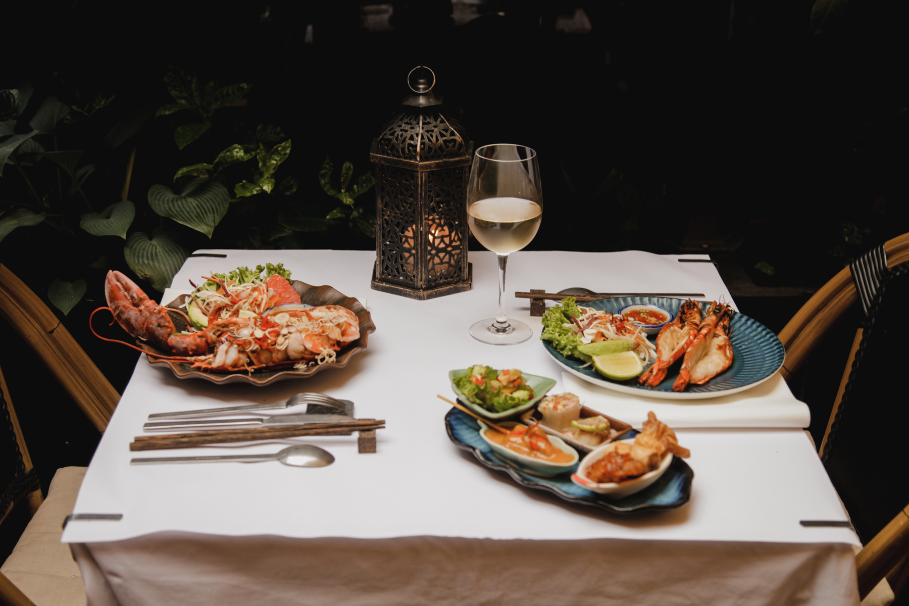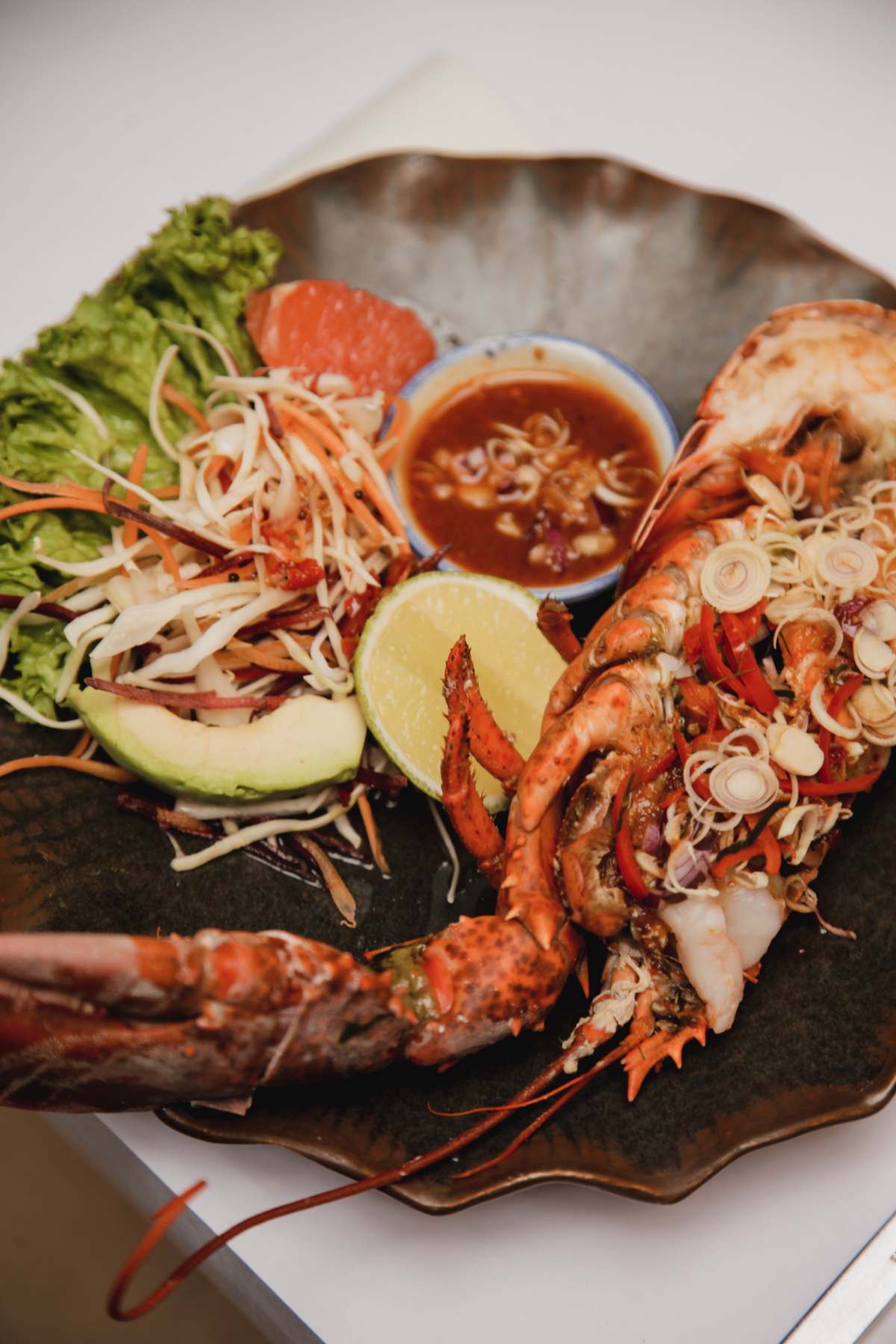 Everything is super fresh and delicious, made with a blend of fine-dining culinary styles and authentic Thai flavors, but we particularly recommend the lobster with lemongrass and chili paste served with avocado and pomelo. This special dish has an unusual but effective combination of lobster with spices and herbs.