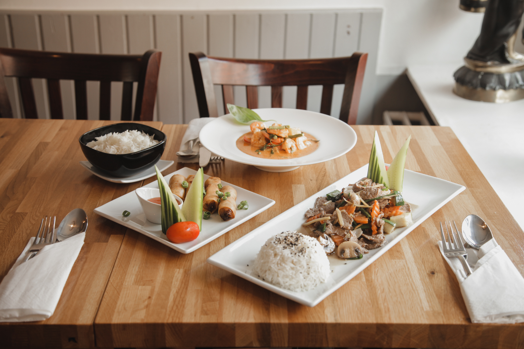 The food is authentic, beautifully prepared, and delivers a true Thai experience – aka, there’s some real spice. The restaurant itself feels like a visit to a family home – relaxed and full of god stemning, or good atmosphere. This is especially important to Suppi and Niran, who have carved space for family time into the business. “It is really important to us that there is balance in our life so that we have time to be a family, that we have time for love and that we have time to do what we love. If we can’t enjoy our guests and have time for a chat or a cozy time, it will no longer be worth it.” They even host live music on Fridays from 7 pm to 9 pm.