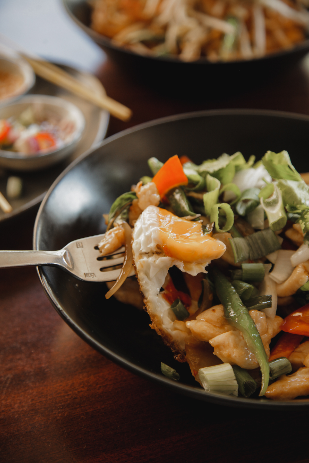 Pad Thai, Mooklob Phadped, and Platod |