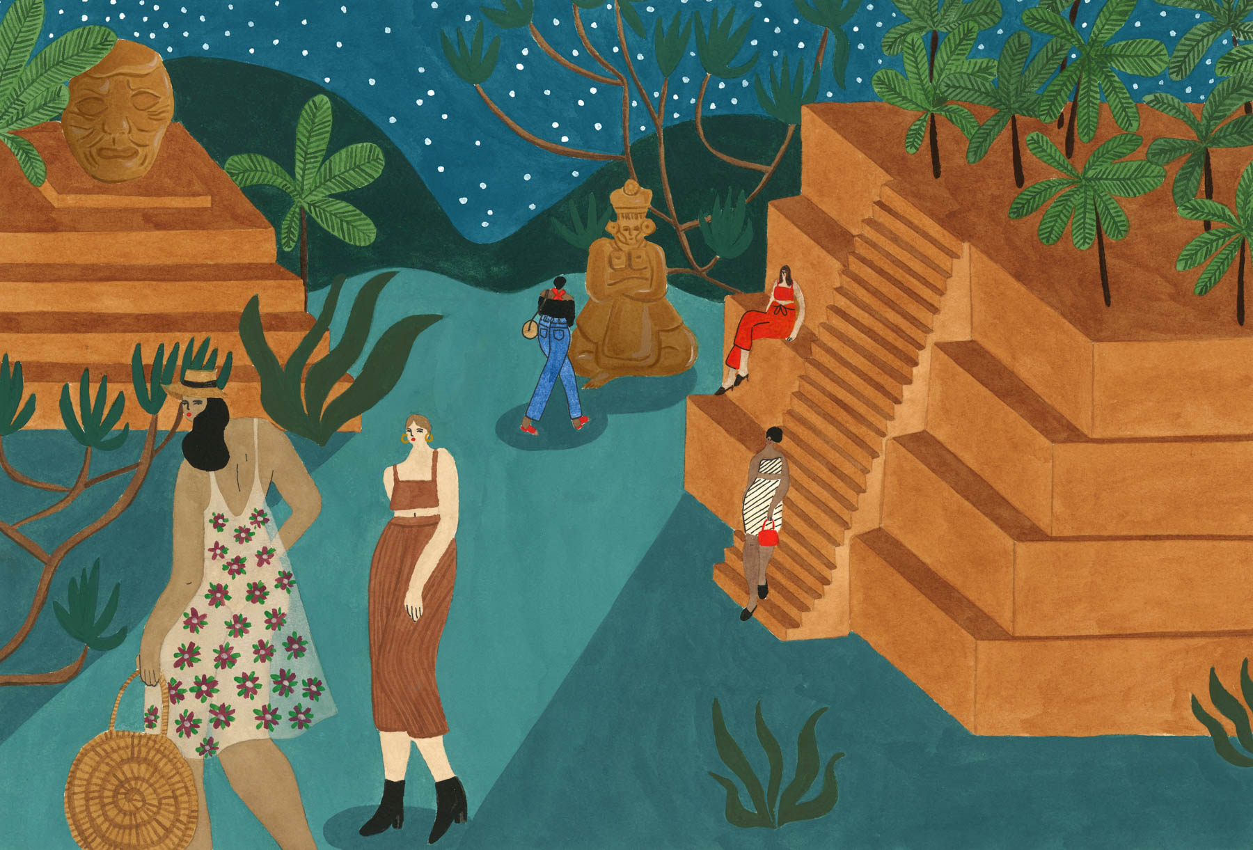Isabelle Feliu is an Oslo-based, Québec-born illustrator whose work captures a blend of cultures, celebrates womanhood, and highlights body positivity in a wonderful way. Being half-Honduran (her mother is from Honduras), cultural diversity is very important for the illustrator, and so are the memories gathered from the childhood travels. What she saw and experienced during those voyages later became a huge source of inspiration and imagination. Before becoming an illustrator, Isabelle studied fashion design and merchandising in Montréal. After moving to Oslo in 2016, she switched to illustrating.