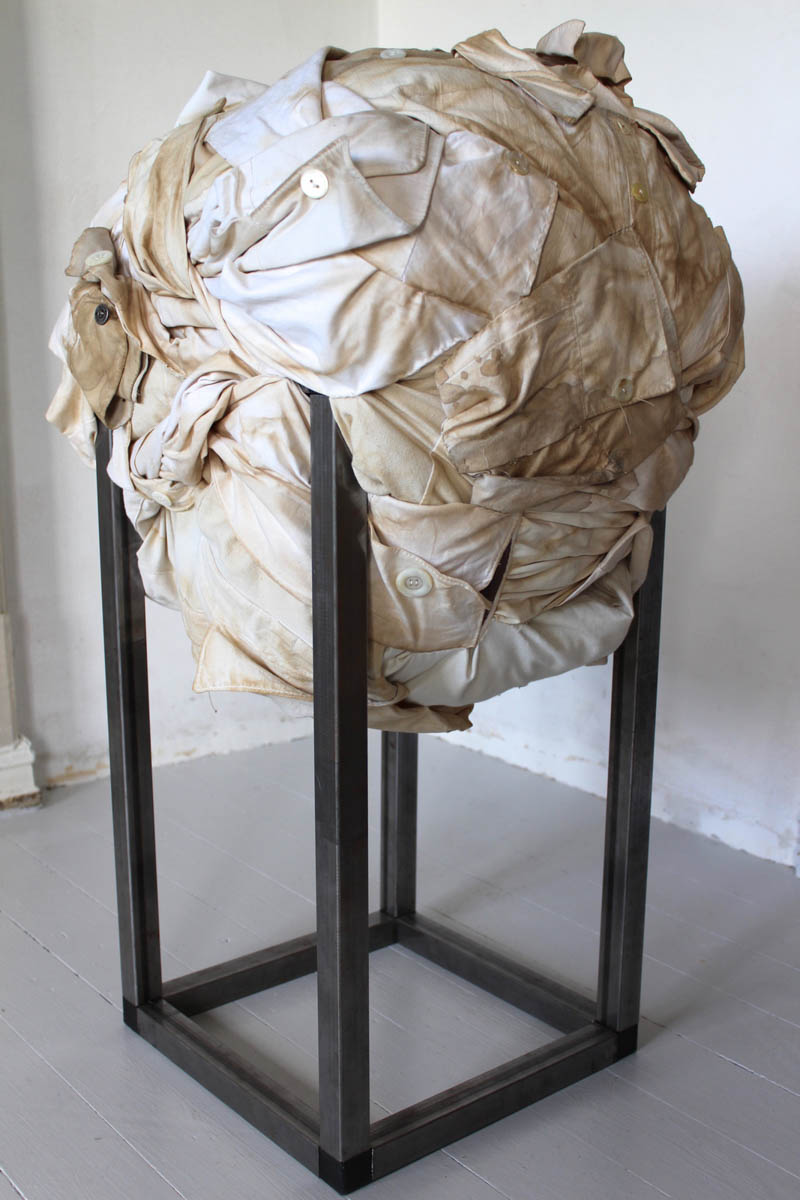 My work revolves around humans and the restrictions we experience as individuals. They might be the societal restrictions or the ones we inflict on each other. Since my clothes-like objects represent humans they often multiply. My focus is on people as individuals versus people as a group. I fear the group in many ways and want to see more of the personal differences.
