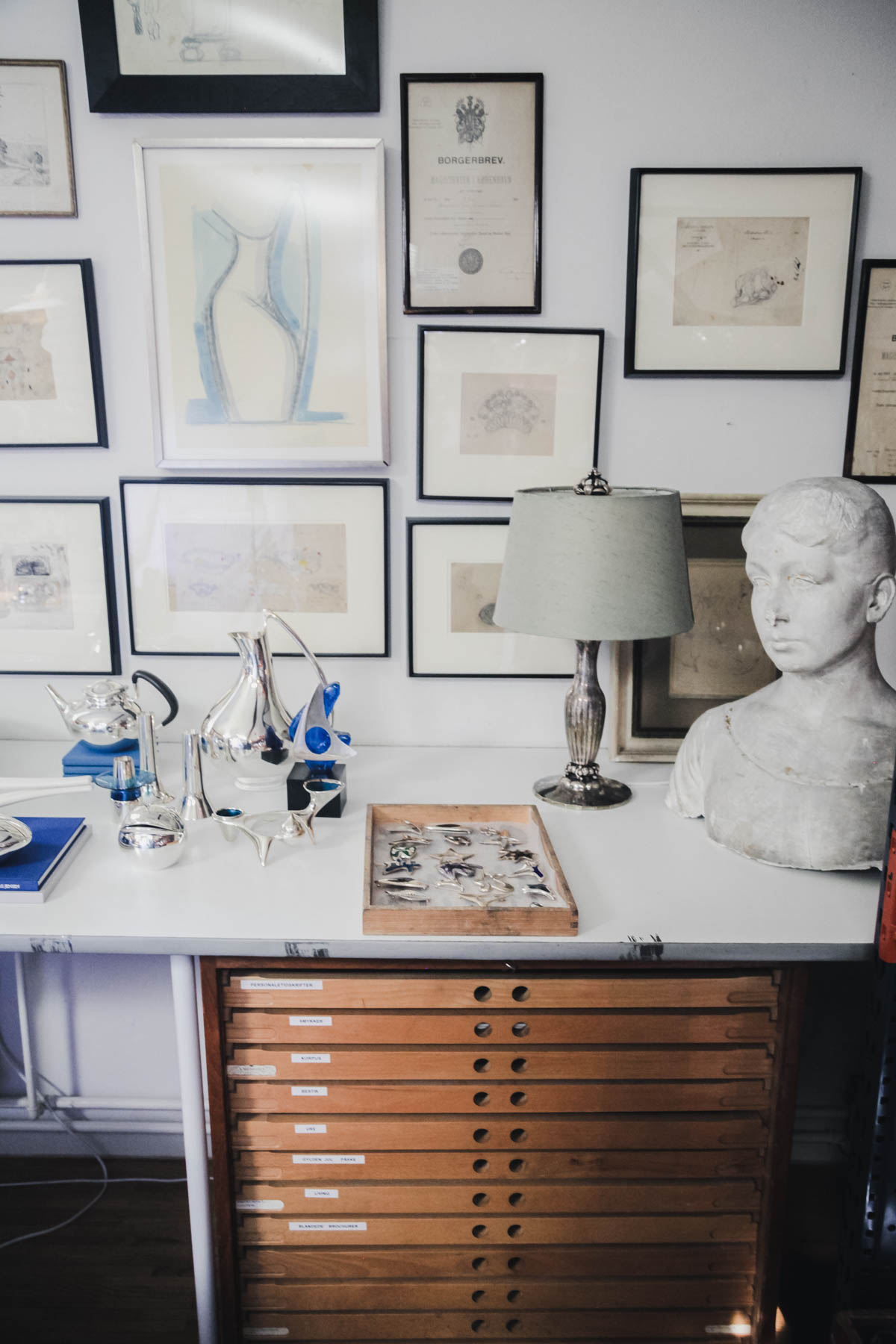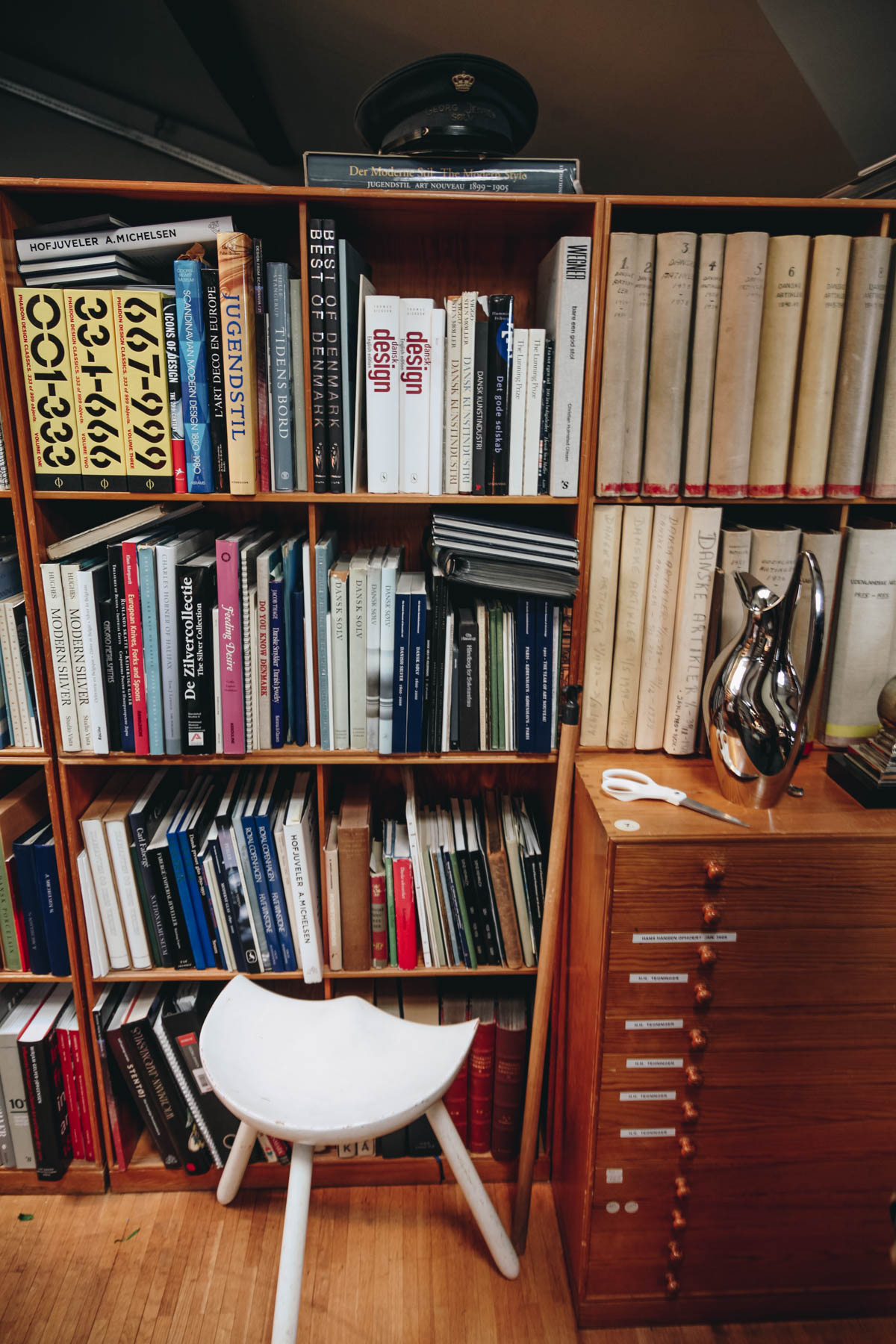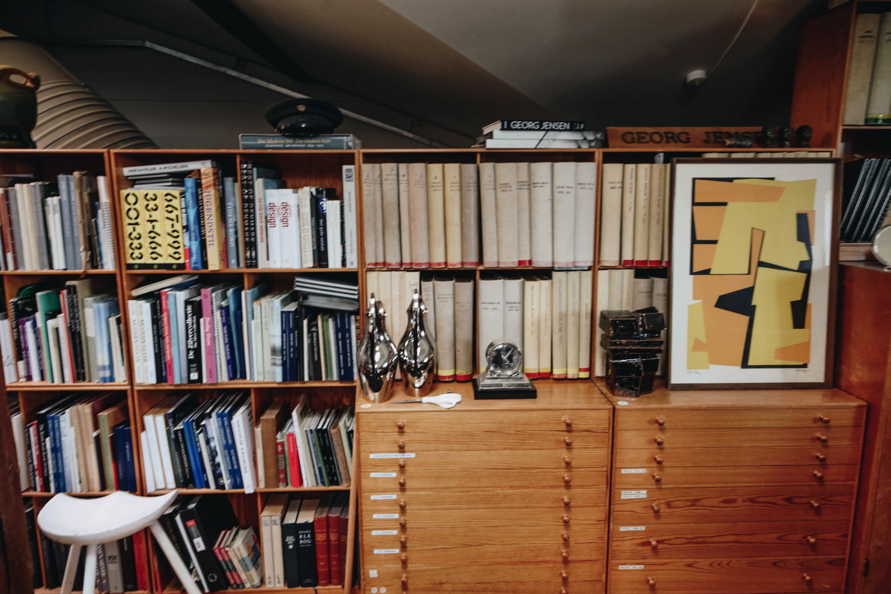 The archive is a small room packed to the gills with papers, books, and gleaming silver. There’s an extensive library of books that feature Georg Jensen, as well as other relevant materials on silversmithing, Scandinavian design, and jewellery design.