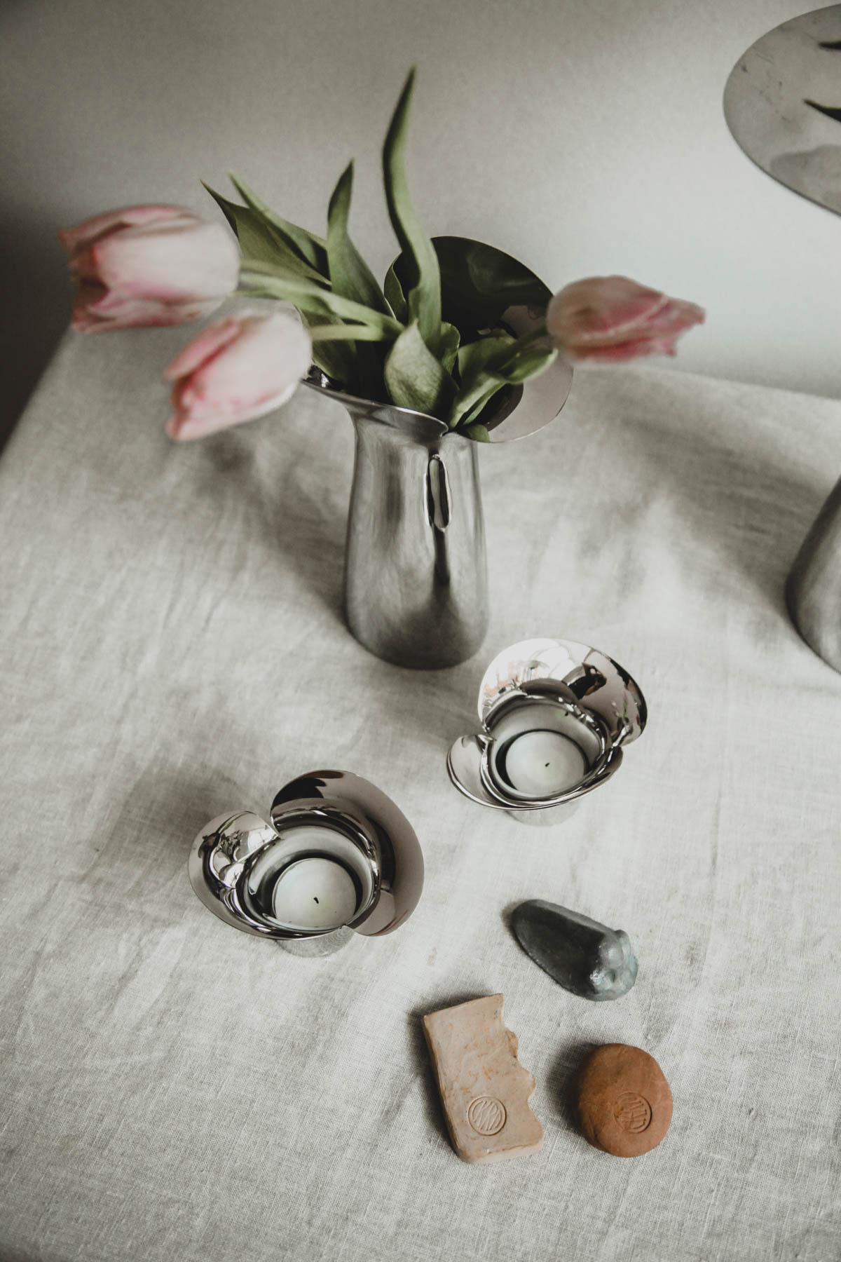Helle notes, “My design language is very close to the modern DNA of Georg Jensen’s design language, created by Henning Koppel and Viviana Torun Bulow-Hube. I have admired them for as long as I can remember and they have both influenced my works greatly. The Bloom Botanica vases are perfect in stainless steel because it is practical, the material reflect the light beautifully and add an elegance to any flower arrangements.”