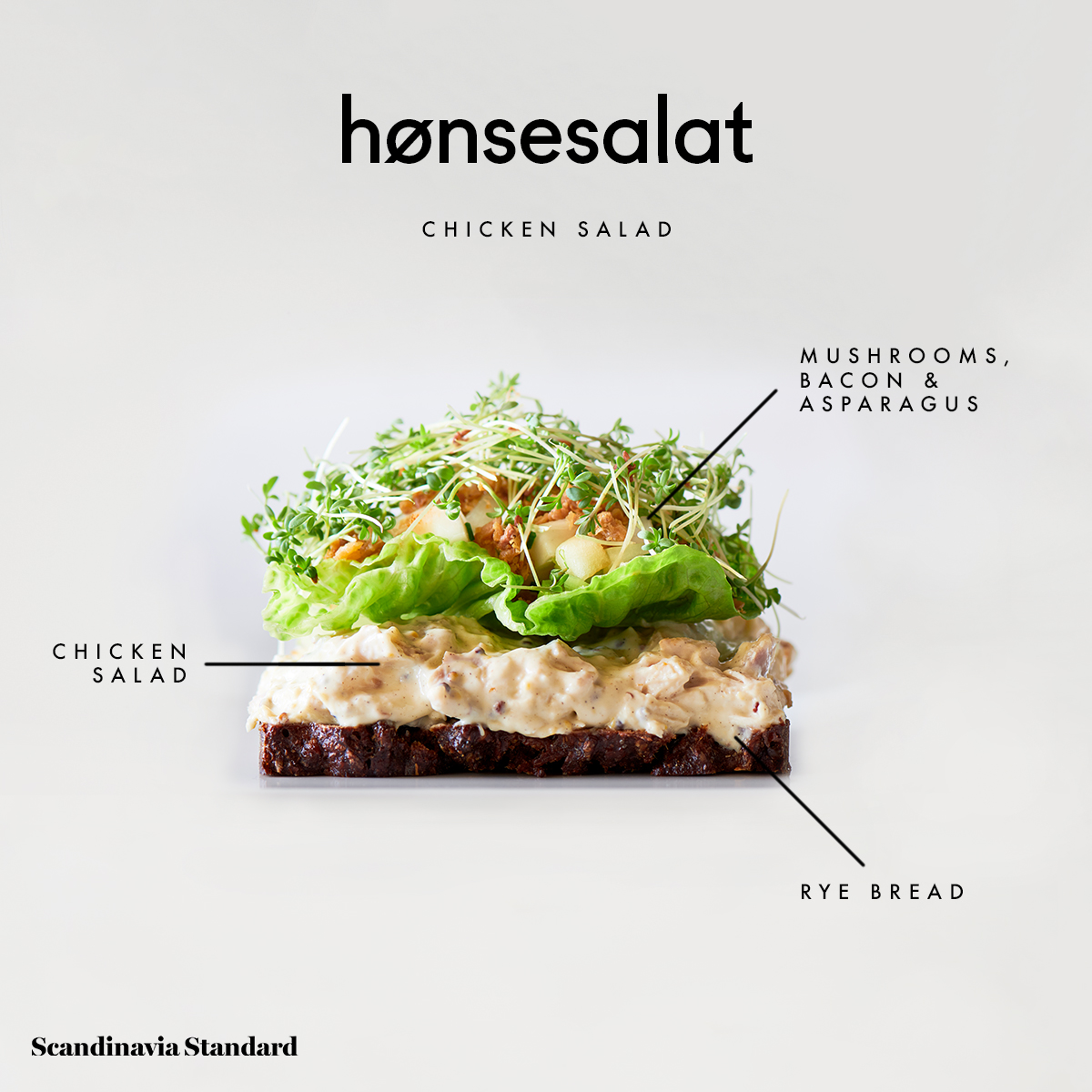 Asparagus and bacon are usually incorporated, either as toppings or within the hønsesalat itself.