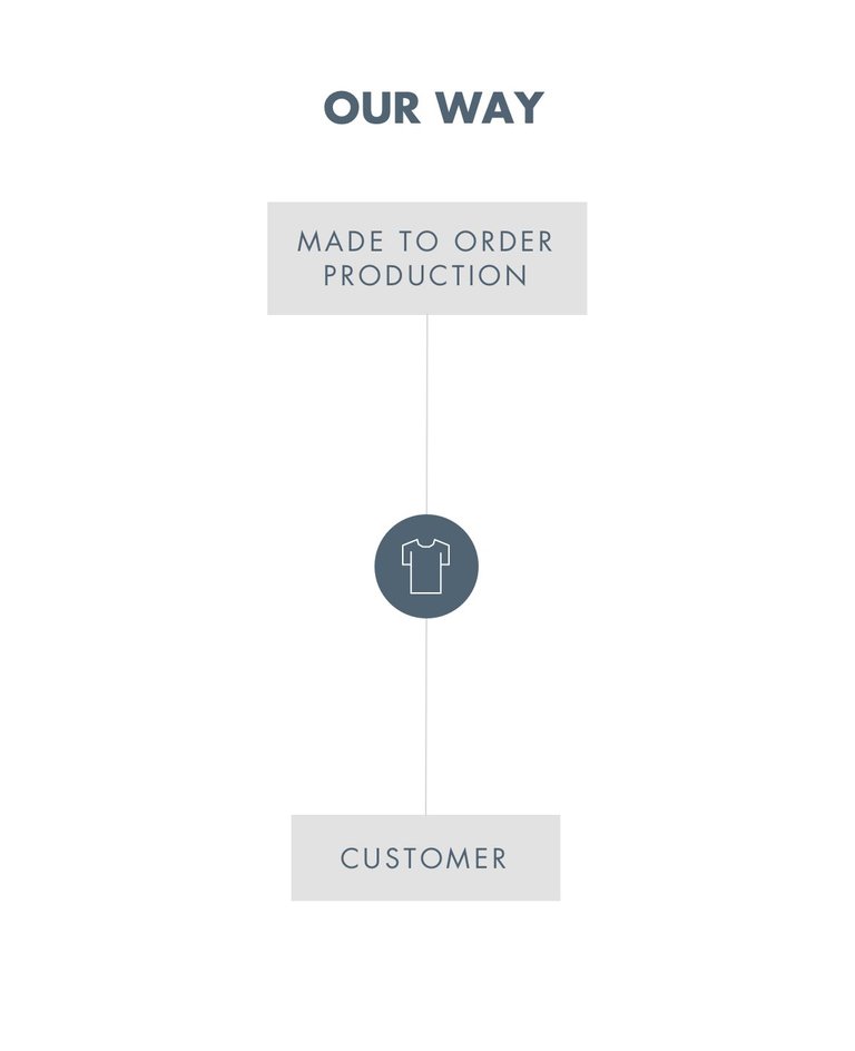 One promising example is the shift towards a made-to-order model. Why waste resources on producing clothes that will never be sold? Son of a Tailor makes clothes to order, based on each customer’s individual measurements. This way, the made-to-order principle is taken one step further. Saying goodbye to mass production and making garments that are custom-fitted to the person who will wear them also goes some way to combating the return problem of fashion e-commerce. Combined with the fact that only materials of the highest quality are used, Son of a Tailor t-shirts have 45% less embodied CO2 emissions than those bought in offline retail and 32% less than in traditional e-commerce.