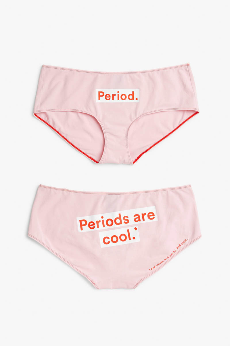 Monki, the Scandinavian fashion brand, has partnered with Lunette to produce a bright pink menstrual cup, as well as some cute underwear and a set of pins, that challenge the idea that menstruation is something of which to be ashamed.