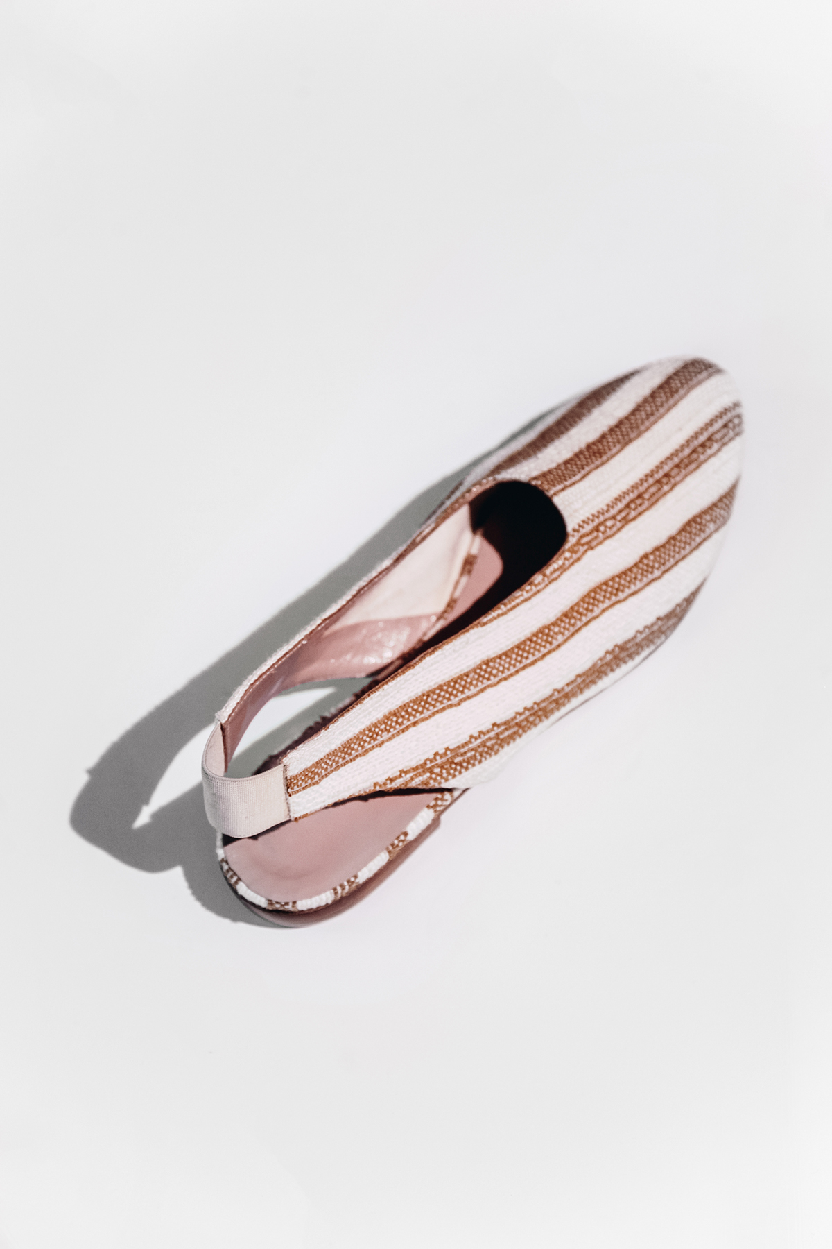 While searching for fabric, she came across deadstock that had been used for parasols in Italy. That’s the striped pattern you see on her shoes today. “I thought, wow, this is really unique. The fabric has a story, just like Bartels does.”