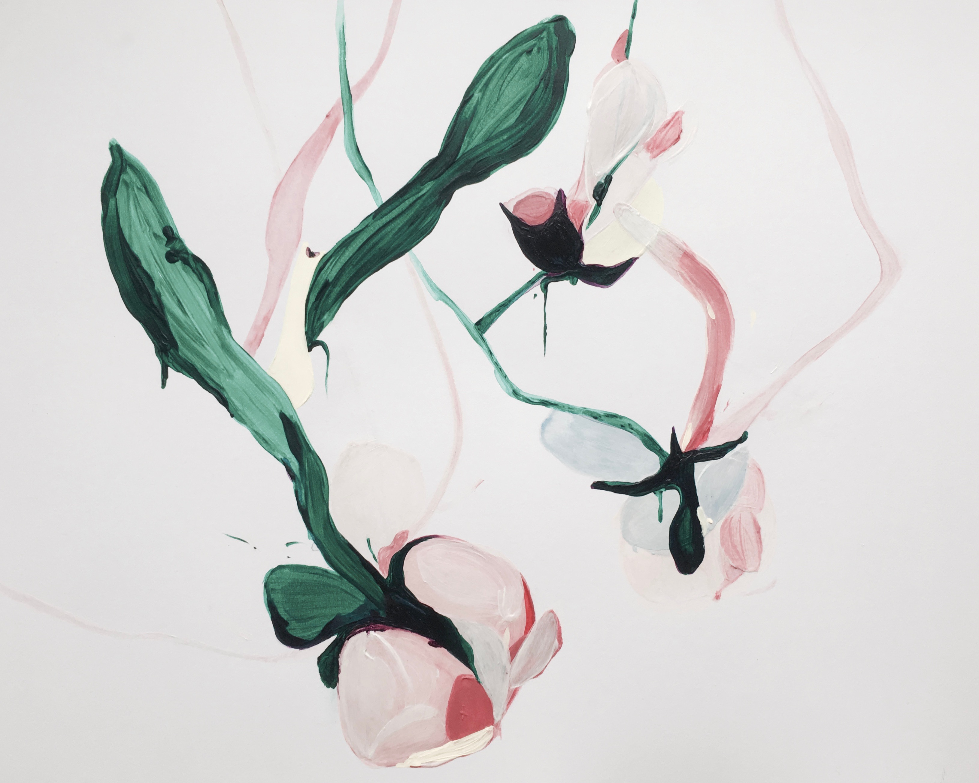 When I start to work on a new piece, I try to do it in a strutted way, but it never works. Sometimes I have a picture in my mind, when I start to paint, it always come out as something else. I am often surprised by the result. It is a unpredictable process and that is what I love. Just to surrender to the work and forget myself for a while.