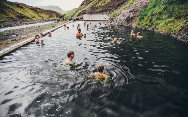 Nestled in a narrow valley in the shadow of the infamous Eyjafjallajökull volcano, this is the oldest swimming pool in Iceland. It was built by members of a youth movement in 1923 as a teaching pool at a time when the majority of Icelanders worked in the fishing industry but left school without ever learning to swim. Set into the side of a mountain, it is fed by both hot water seeping from the rock face and a pipe from a nearby spring. It is 25m by 10m, has a very basic changing room and is run by volunteers. There is no charge. Swim lengths or just soak and enjoy the rugged landscape.