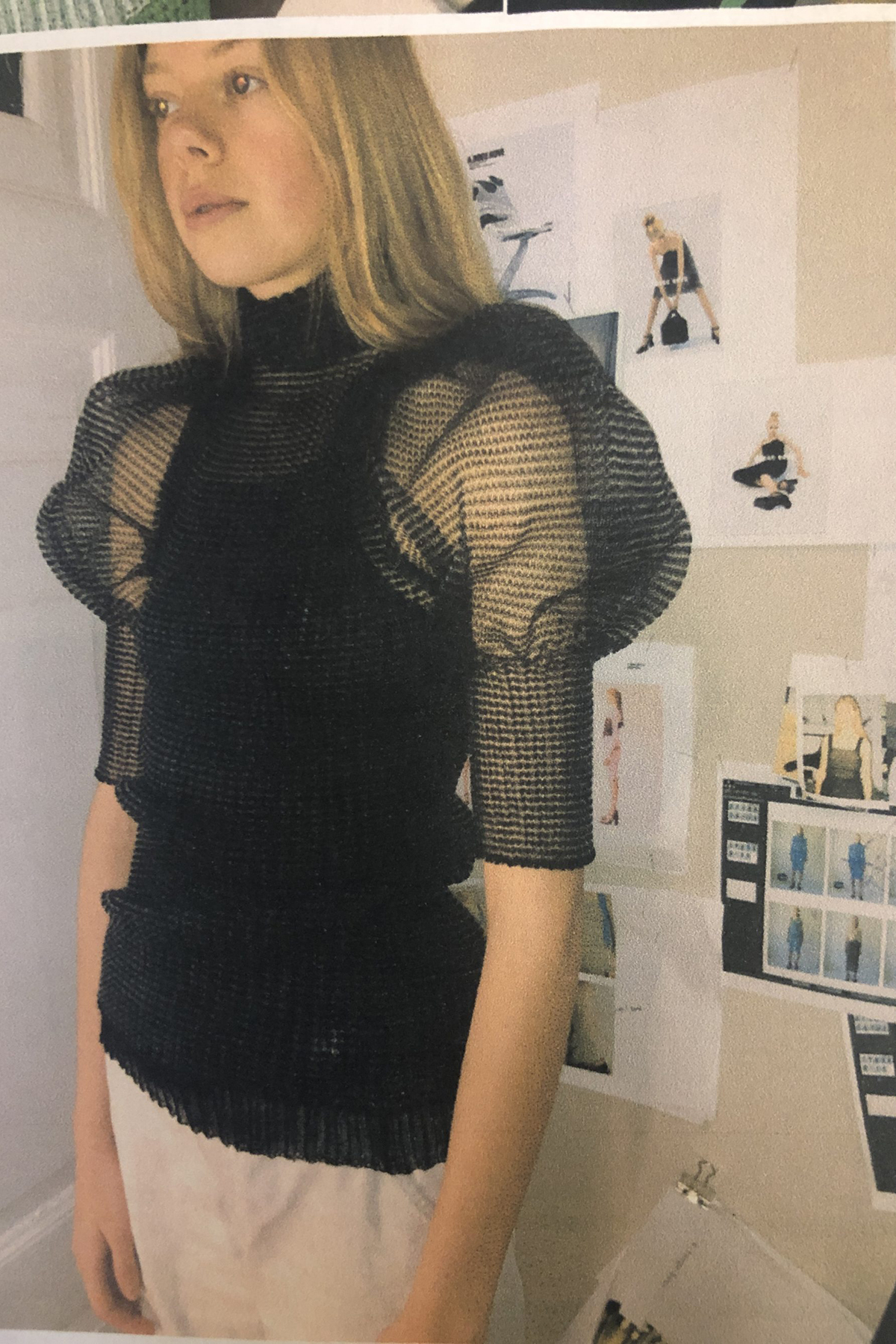 Her work challenges perceptions of shape, both in terms of the body and in how we expect fabric to function. She is constantly trying new techniques and knitting innovations in order to make her work as waste-free as possible.