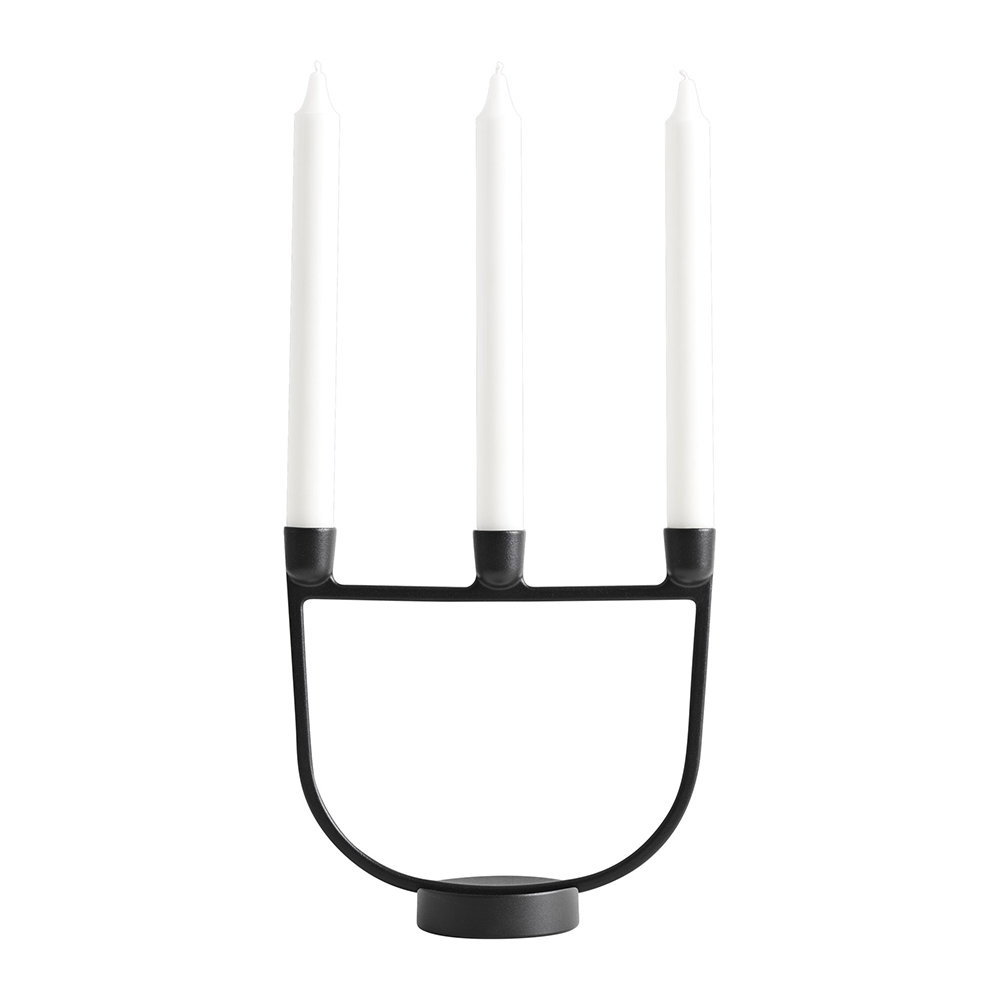 This striking design of the Muuto Open Candelabra is a contemporary take on a classic design, with three candles spaced in a symmetrical line but without the usual branching arms. The result is a simple yet bold shape, one that sits well in a windowsill or at the center of a table.