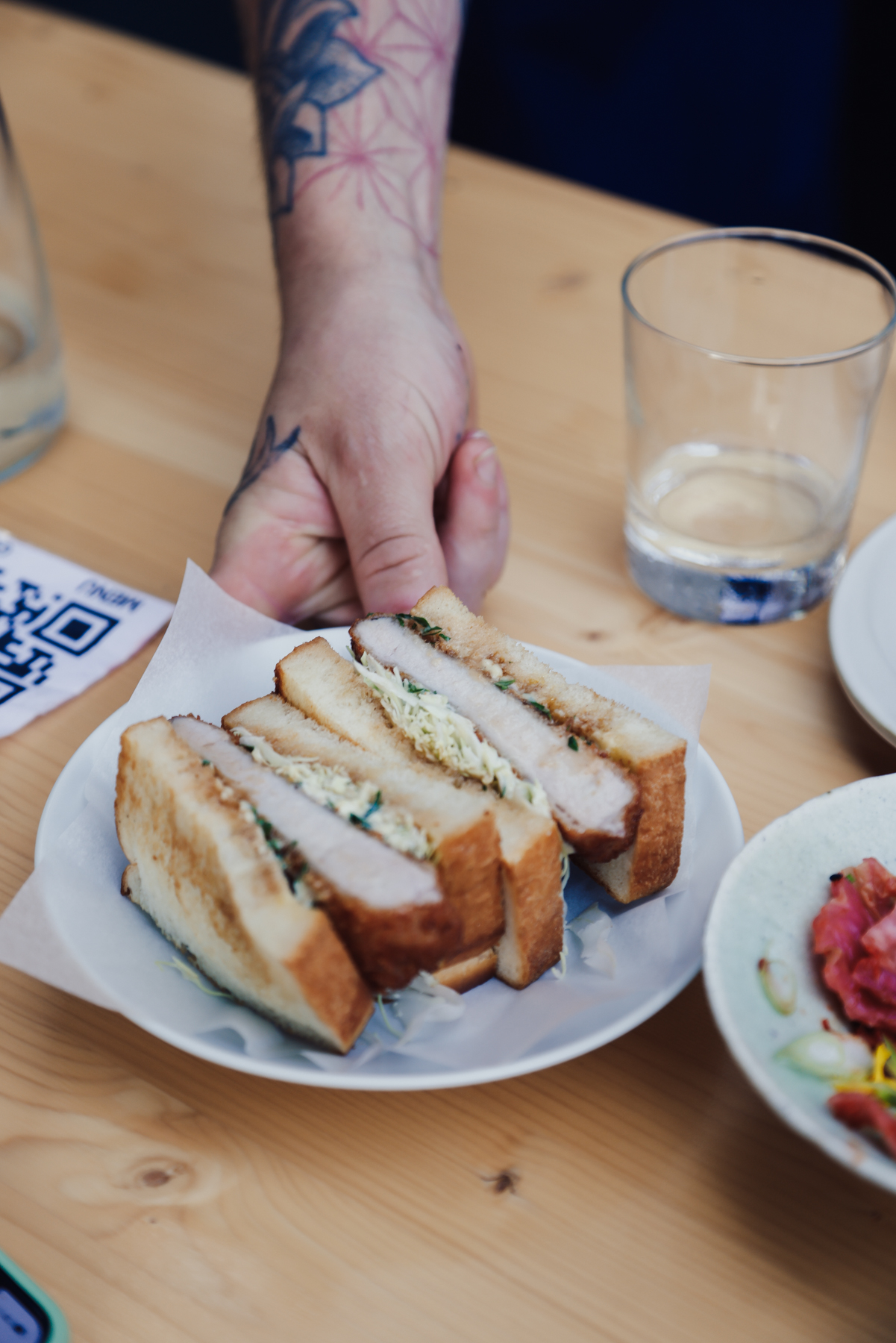 Upstairs, we recommend the Sando, which means sandwich in Japanese. The Katsu Sando is especially excellent. It’s a milk bread sandwich with breaded pork loin cutlet, cabbage, parsley, mayo & tonkatsu sauce.