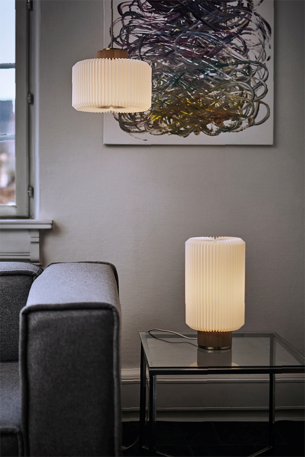 Le Klint is known for its lampshades, which are hand folded in the company’s production site in Odense, Denmark. Its classic series Cylinder is now also available in light oak with steel and brass details.