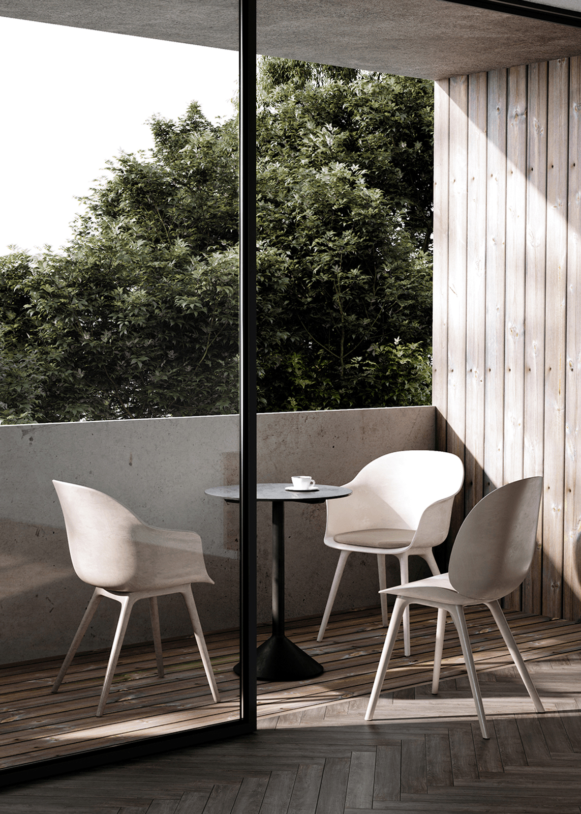 GUBI is breathing some fresh air into your outdoor setup. Two of the Danish brand’s most popular dining chairs, Beetle and Bat, are now reimagined for outdoor use by adding a special treatment as well as a sense of informality to their elegant lines.
