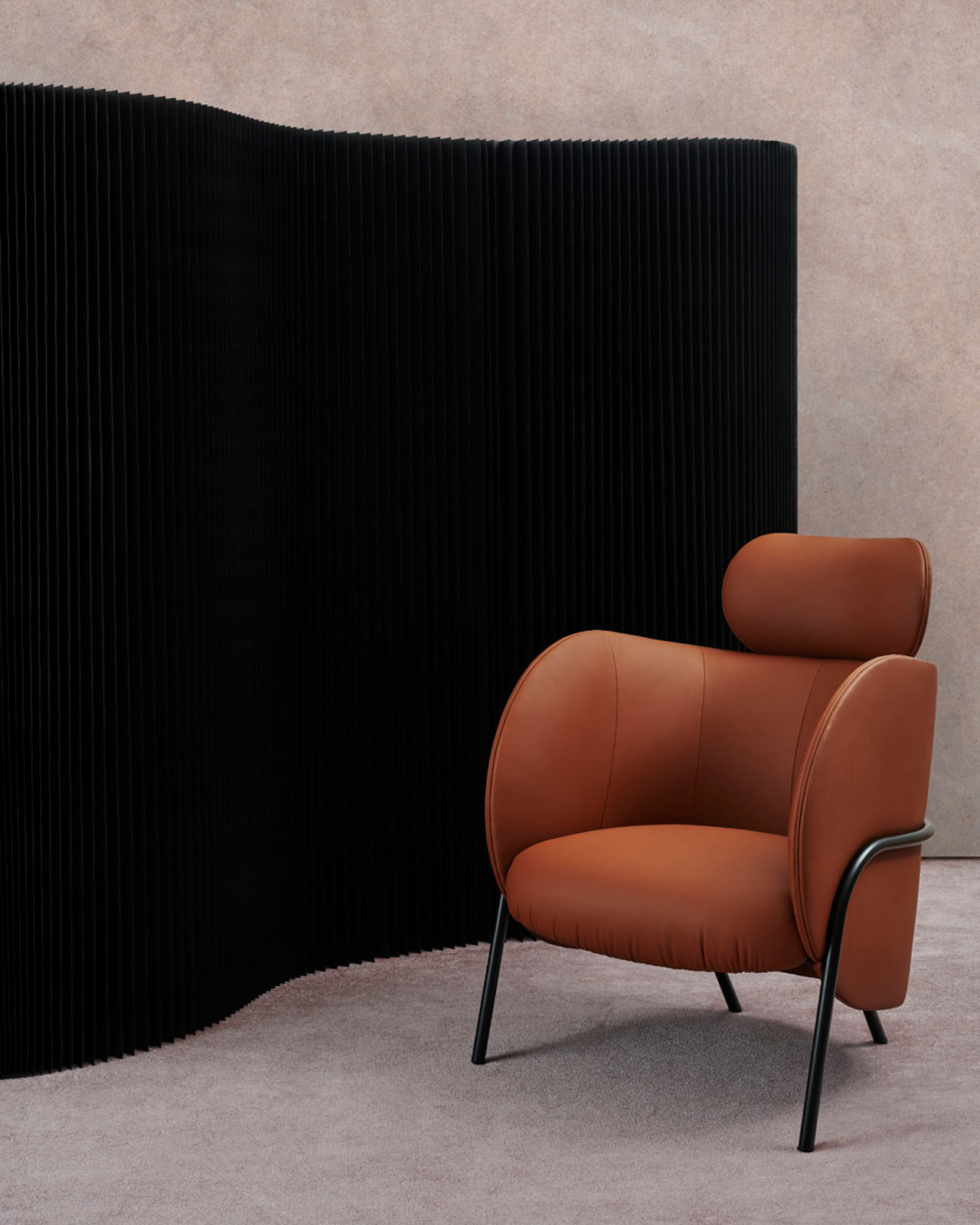 The sculptural and compact armchair is an assemblage of curves with not a single linear line in sight. With or without headrest, this looks like the ideal nook for reading a good book or for taking home office calls.