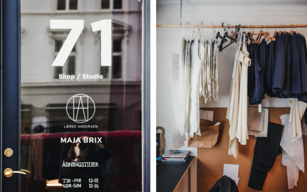 Fashion designers Maja Brix and Lærke Andersen opened Butik 71 in 2016. With office/studio space to either side and a boutique in the middle, all separated by two sets of heavy red velvet curtains, this is a space that both invites browsing and encourages creativity.