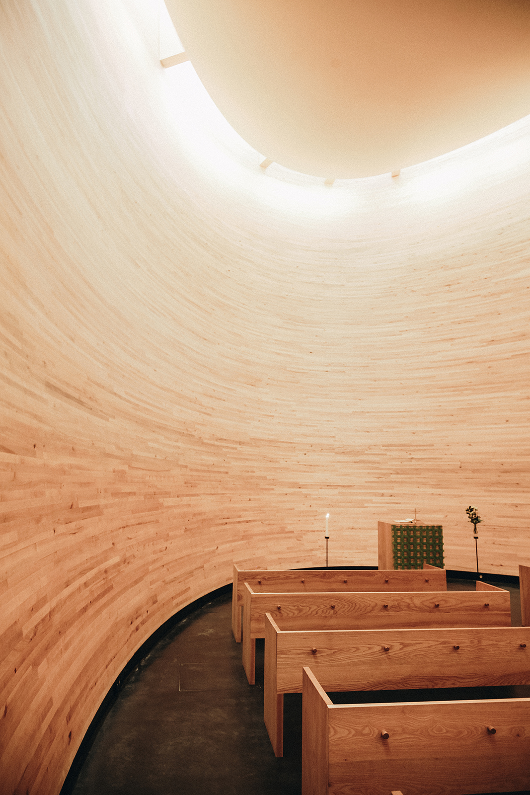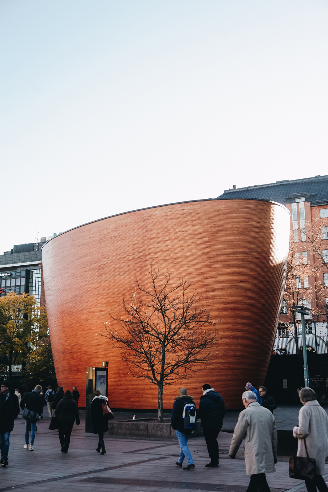 Since then, significant projects have included the Tampere Main Library of 1986 by Reima and Raili Pietilä, with its sculptural form, and the Helsinki Central Library Oodi of 2018 by ALA Architects that uses glass and wood to create a permeable transition between its interior spaces and an adjoining public square. The Kamppi Chapel or Kampin Kappeli from 2012 designed by K2S Architects, stands as a refuge of calm and quiet within the bustling city of Helsinki.