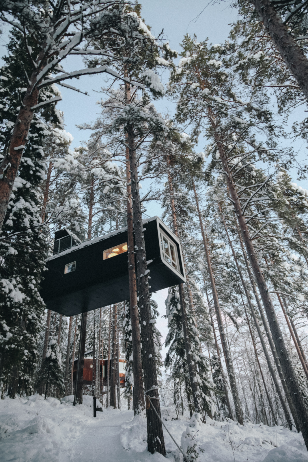 In northern Sweden, you’ll find one of the more publicly-known modern architectural feats: the Tree Hotel. This multi-structure hotel embedded into the Swedish forest features The Mirrorcube from 2010 by Tham & Videgård and The Cabin from 2010 by Cyrén & Cyrén. Both firms are well-known for their innovative and visually stunning work.