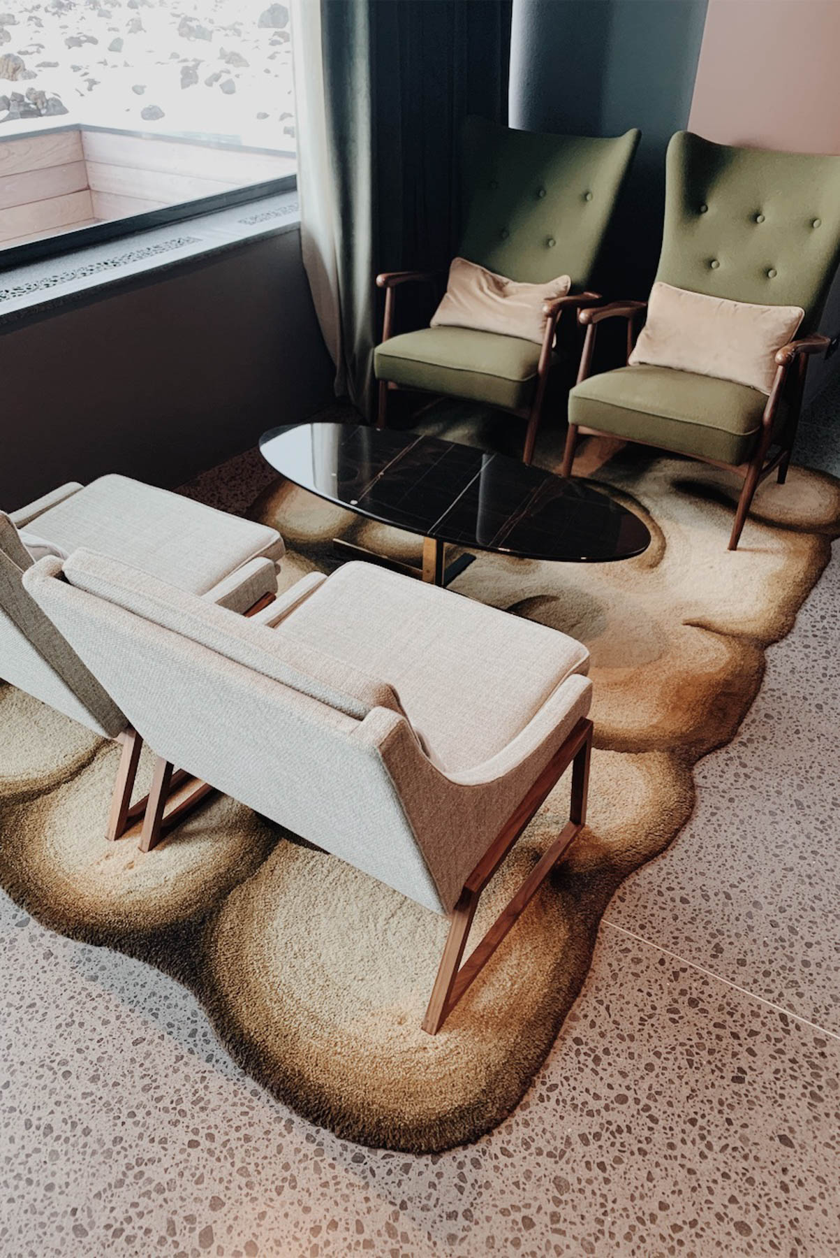 A gourmet restaurant that is part of the Retreat, Moss is an incredible culinary and visual experience. The interiors have been designed to mimic the colors and textures of the Icelandic landscape, including shades of green throughout that imitate the spectrum of greens found in moss.
