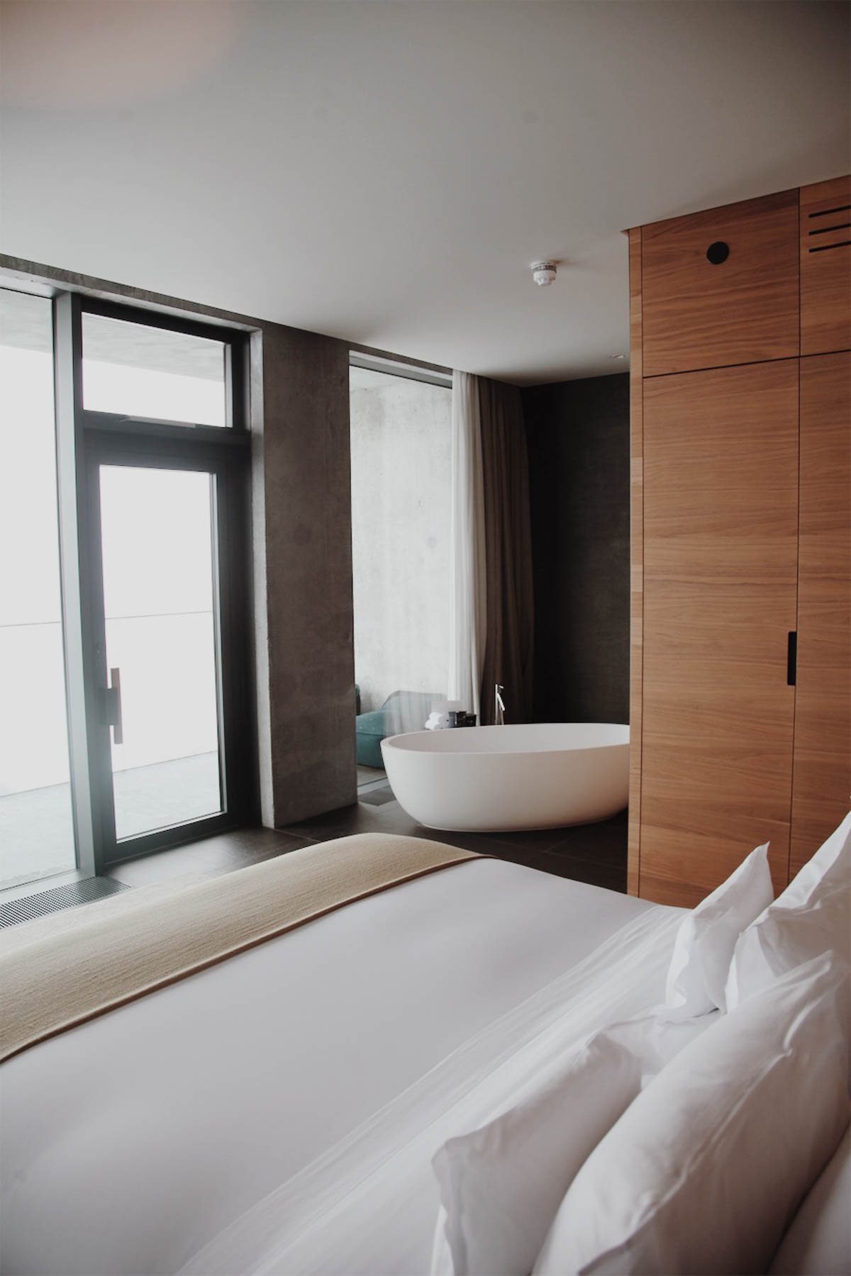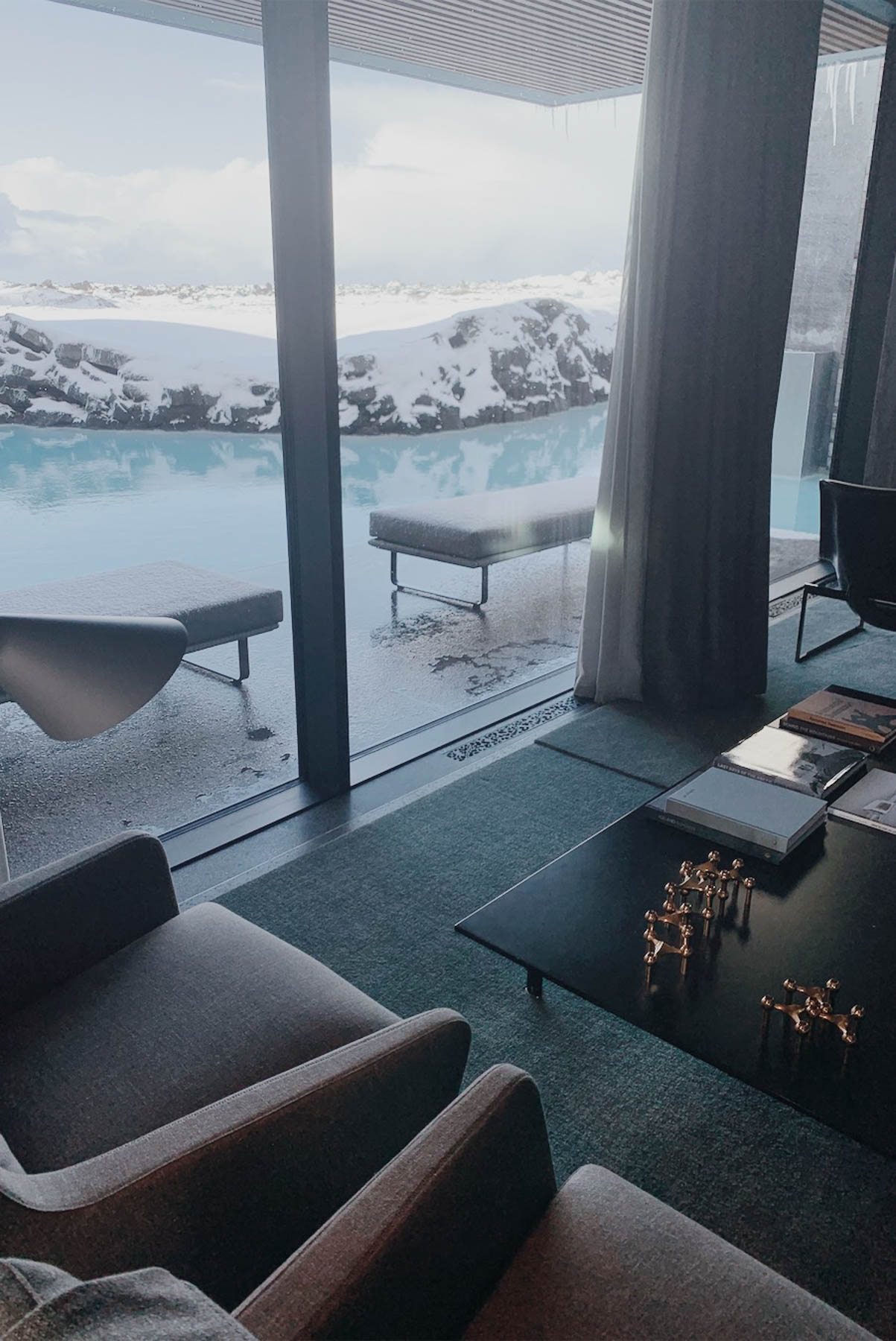 The bedrooms are serene spaces filled with minimalist yet comfortable Scandinavian design, local art, and huge windows that look out over the awe-inspiring lava fields and pools of the lagoon. The rooms do not have televisions, as a way to encourage guests to be present in the unique natural setting.