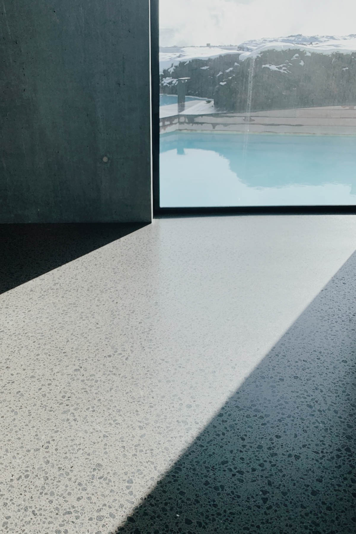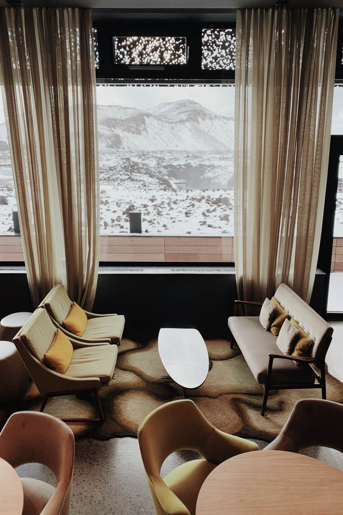 The Blue Lagoon’s on-site restaurant, Lava Restaurant, has a wall of solid lava, truly bringing the outdoors to your dining space. The high windows integrate further with the exterior, making guests feel that they are still enjoying the lagoon even as they dine in cozy comfort.