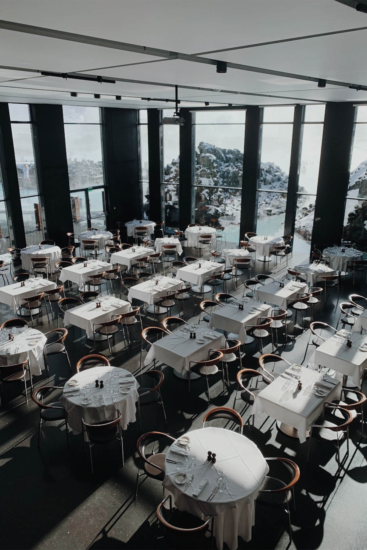 Moss restaurant is built on the highest point of the Blue Lagoon; the view of Mount Þorbjörn and the moss-covered lava fields is stunning.