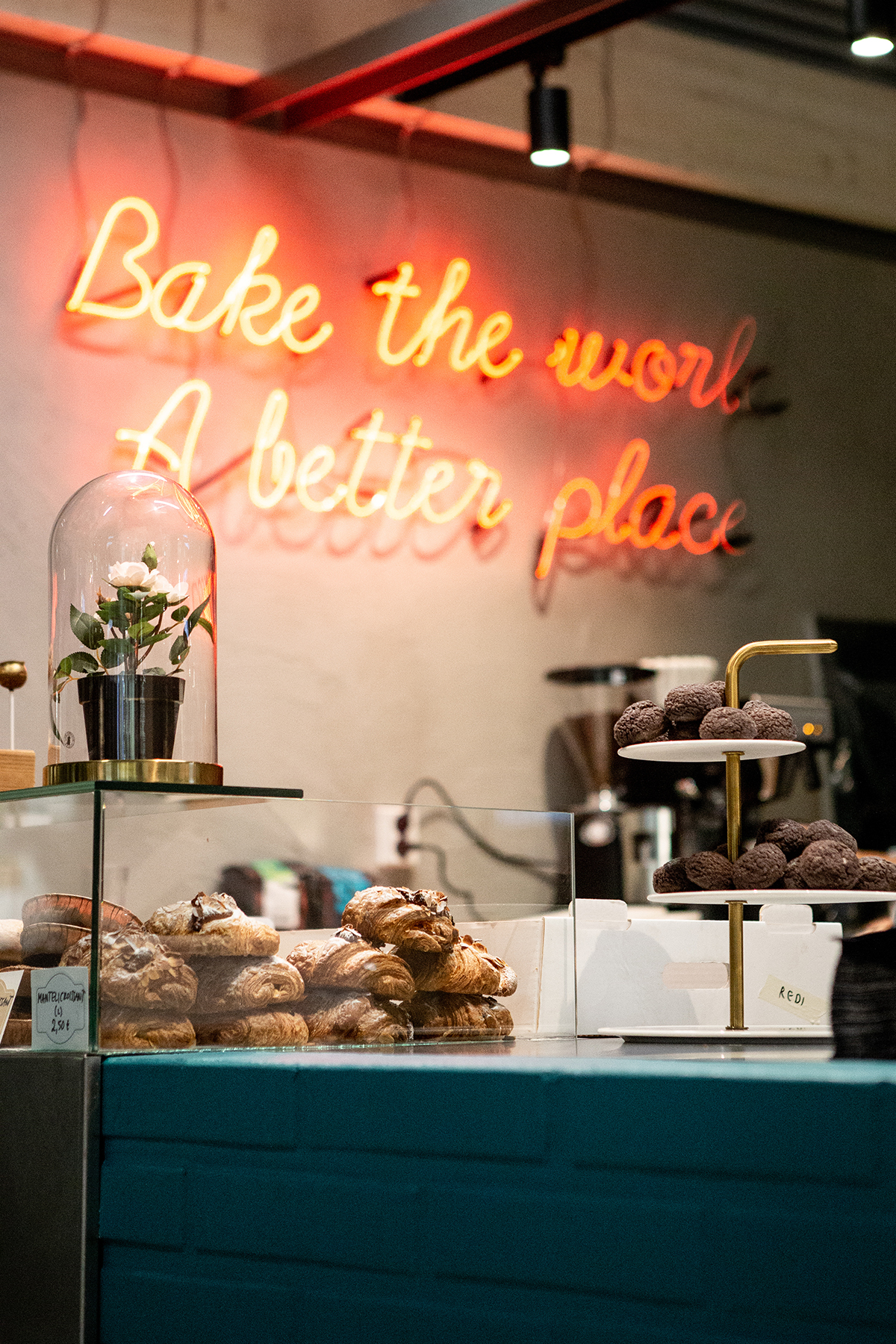 The bakery operates under the same name and roof as Hotel St. George, together with a restaurant, bar, and spa. Opened in 2018, St. George is the latest addition in a line of exclusive boutique hotels in Helsinki. Sightseers and shoppers, families and business people all appreciate the central location. The place already has a steady client base, consisting mostly of business-minded creatives and start-up wunderkinds holding casual meetings about their next tech ventures.