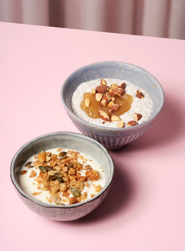 Some of our favorites are the coconut milk yoghurt and a dash of creamy peanut butter, topped with crunchy granola, dried berries, and sweet Cicely.