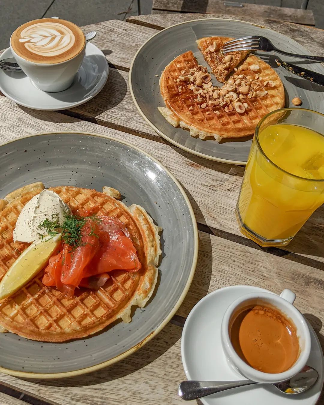 The all-day menu includes perfectly executed porridge with white balsamic, pistachio brittle and strawberries, or house-spiced hazelnut butter with sliced apple and lemon thyme.