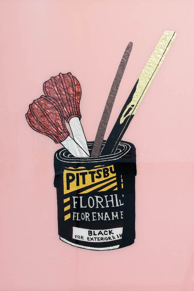 I don’t really see them as that different, but yes, tinsel paintings or reversed glass painting is a technique I came across when I was living in New York five years ago. I saw a show at the American Folk Art Museum called “Foiled” which inspired me; I adopted the technique after that. Tinsel painting is a technique that women used in the late 18th century. They painted on the back of a piece of glass leaving some areas free onto which they applied tinsel foil or glitter paper, making the most beautiful decorative and shiny motifs. This also created more light in their candle-lit homes.