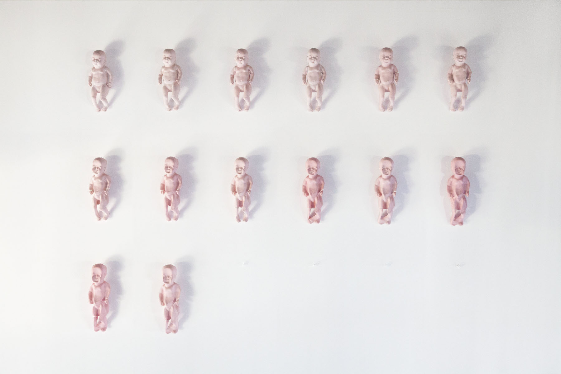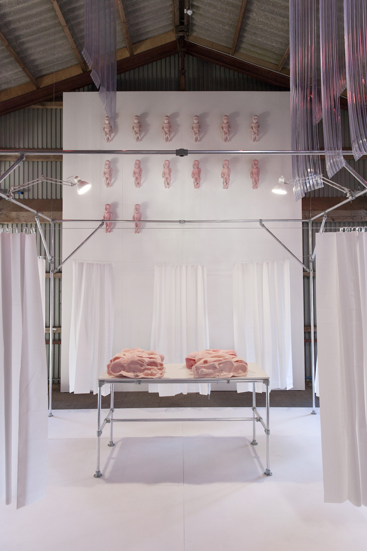 In “Replika – staging a human production line” I continued on the topic of human evolution and focused on the idea that every little change we make will have a huge impact over a long period of time. Starting from a realistic representation of a human baby, I looked at evolution as being “a copy of a copy of a copy.”