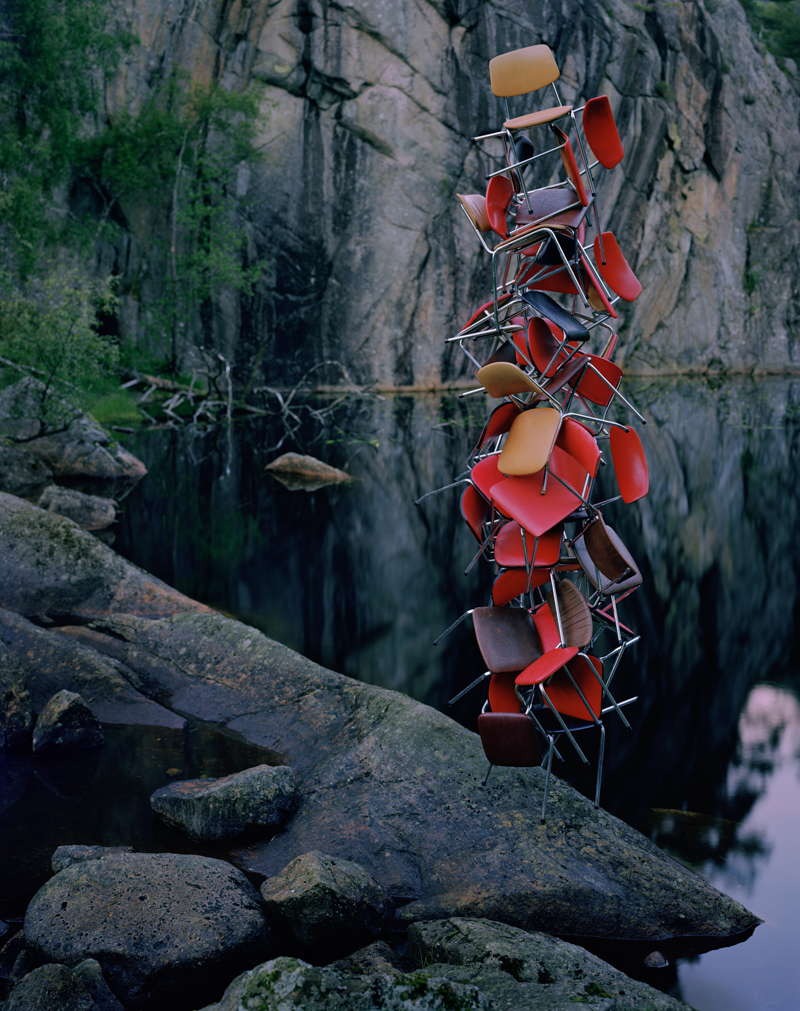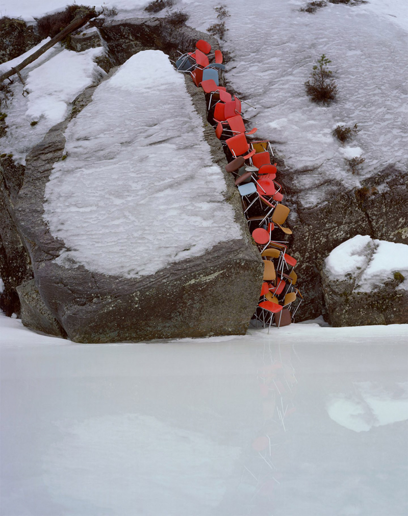 Rune Guneriussen is a Norwegian conceptual artist whose work defies definition, walking between photography, sculpture, and installation. According to the artist, viewers see photography as the primary medium of his works but in the process, it is secondary. The artist refuses to be part of the technological revolution that separates humans from nature, from their genuine state of being; instead, nature is the cornerstone of Rune’s artistic process. By juxtaposing different objects in various locations, the artist freezes time and writes his own story. There are no humans in Rune’s installations. By excluding people from the scenes, the artist has found an alternative way of interacting with nature and its landscapes. The dialogue between the two is intimate and pure, and the results are magical.
