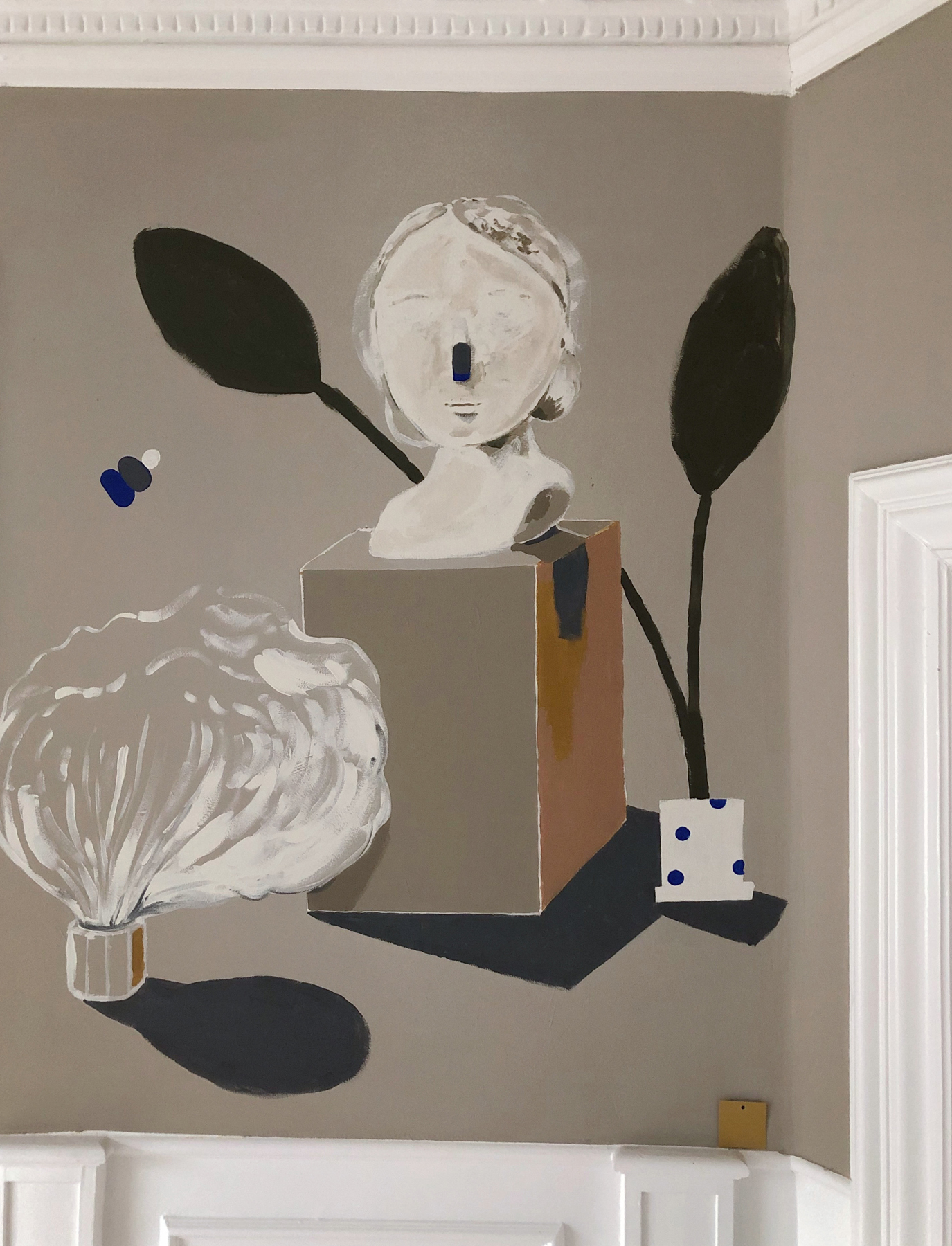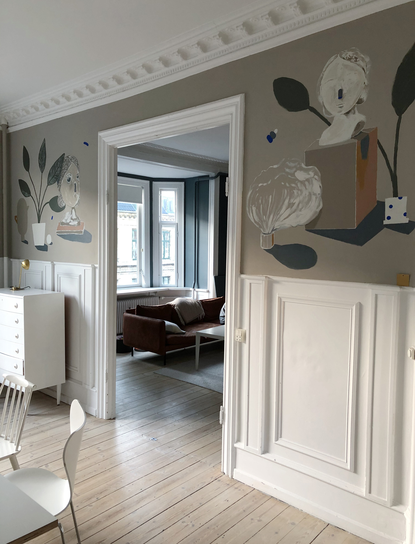 Above: The walls of Trine Natskår’s Copenhagen apartment are decorated with lively murals that she painted herself