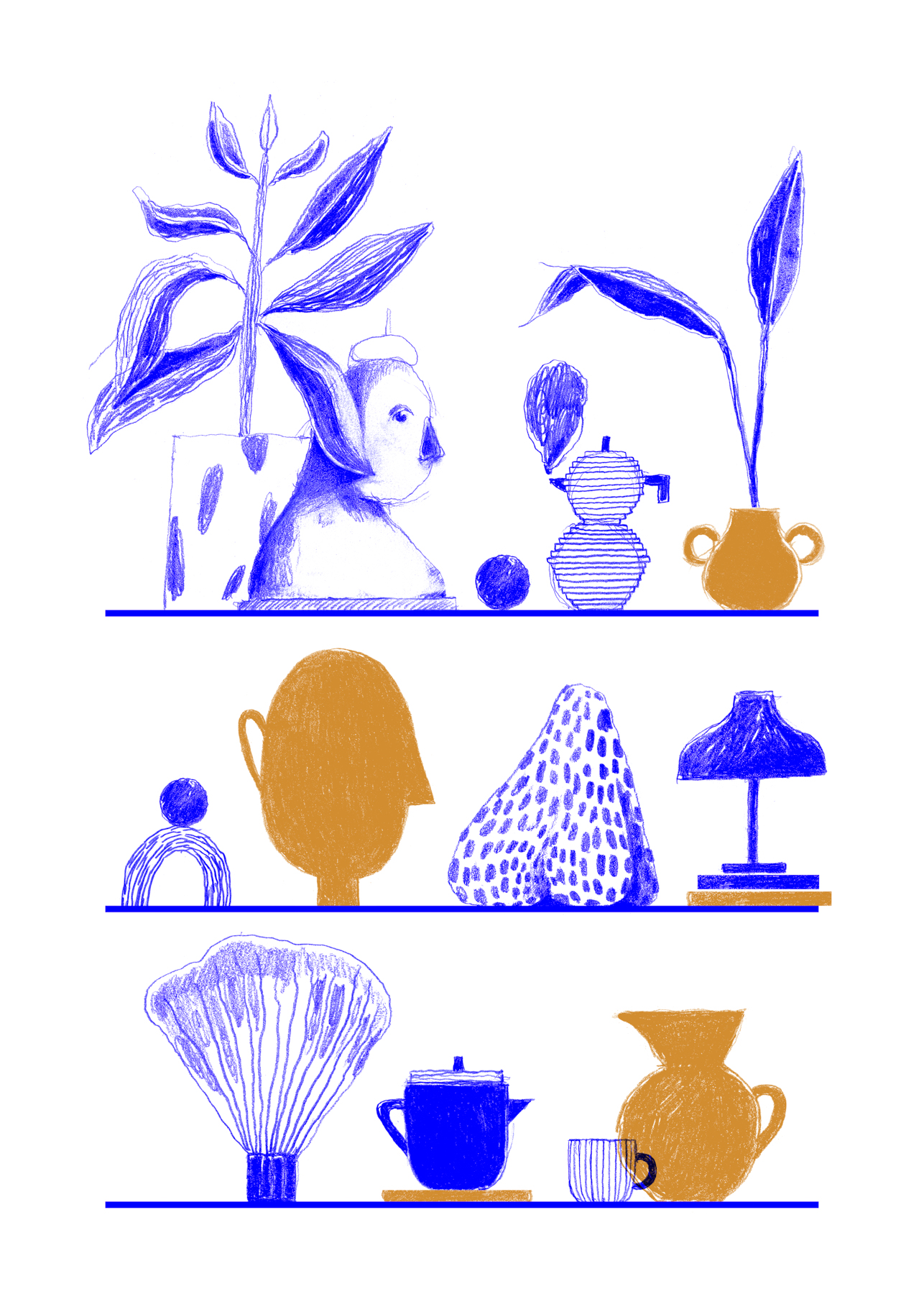 It varies quite a lot: interior design, fashion, other illustrators, daily life. I also do a lot of music-inspired drawings. That is a very intuitive way of working; listening to music while doodling and letting my imagination run free.