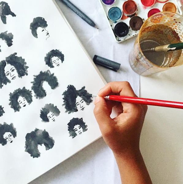 That first book, a coloring book called I Love My Hair, materialized thanks to a connection from a club Andrea joined called “Ladies’ Drawing Club.”