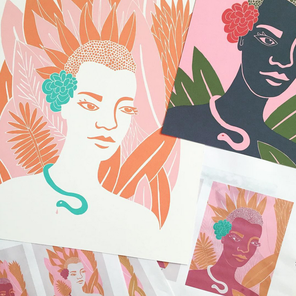 The change of location hasn’t impacted her work, however. Andrea has continued to illustrate books and other projects, all with her signature lush, bright style. She calls herself as a visual activist, referencing inspiration from artists like Sister Corita Kent, Malick Sidibé, and Emory Douglas, the Minister of Culture of the Black Panther Party from 1967 until the party’s dissolution. Andrea’s work calls on similar graphics and bold hues, creating a world that is at once inviting and confident, familiar and unique.