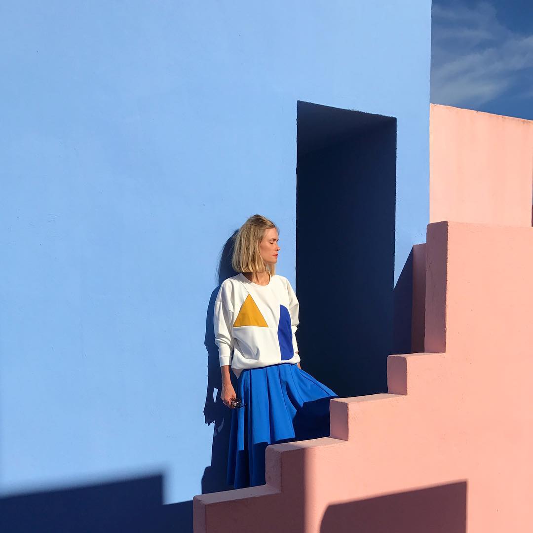 Tekla Evelina Severin embodies this aesthetic; clean and simple, but also bright and lively. Her images capture dramatic colour in bold angular settings – almost brutalist architecture. She also creates images for brands like Bright Volumes, Clashist and Stockholm Design Week.