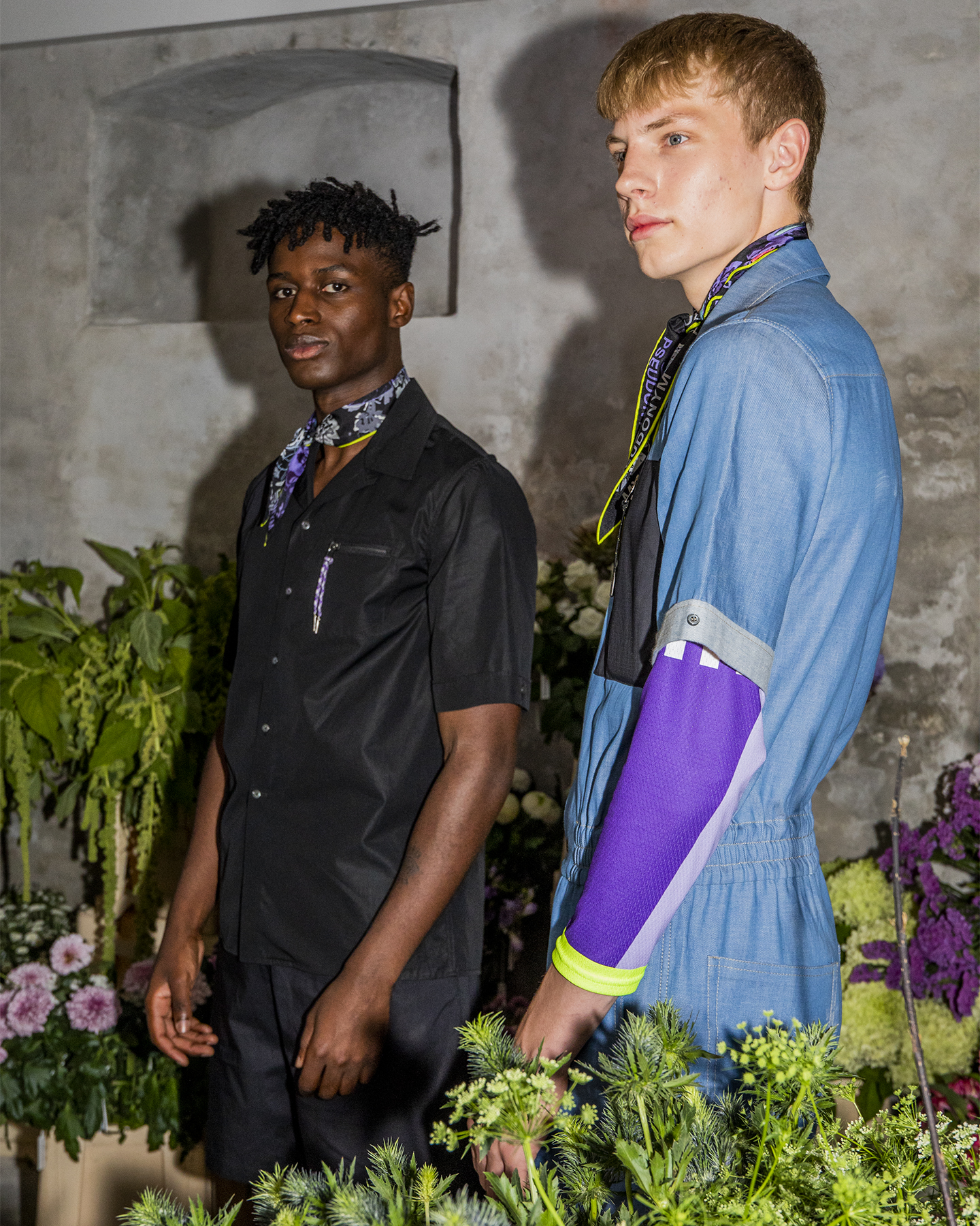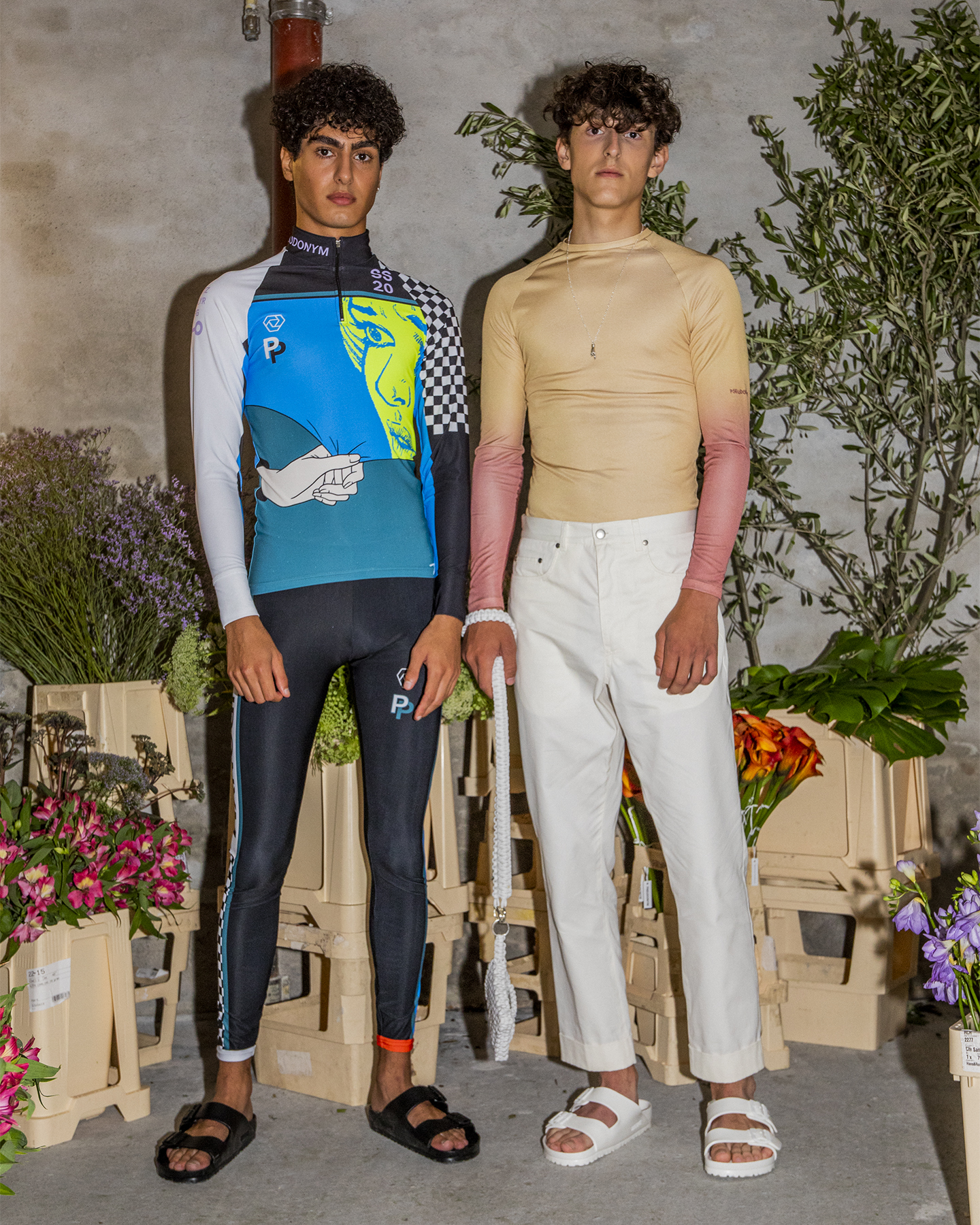 Pseudonym invited us into a midsummer’s dream, including flower picking, during its debut presentation at Copenhagen Fashion Week. Tailoring in relaxed silhouettes was combined with sports and workwear. Cycling-inspired pieces paid homage to the bike as the number one mode of transport in Copenhagen and silky scarves tied around the models’ necks or worn over their hair added to the dreamy vibe of this collection.