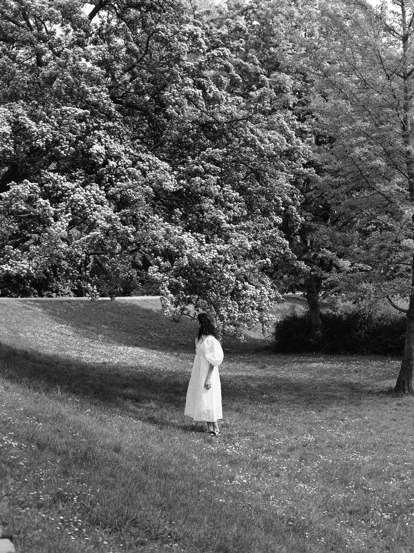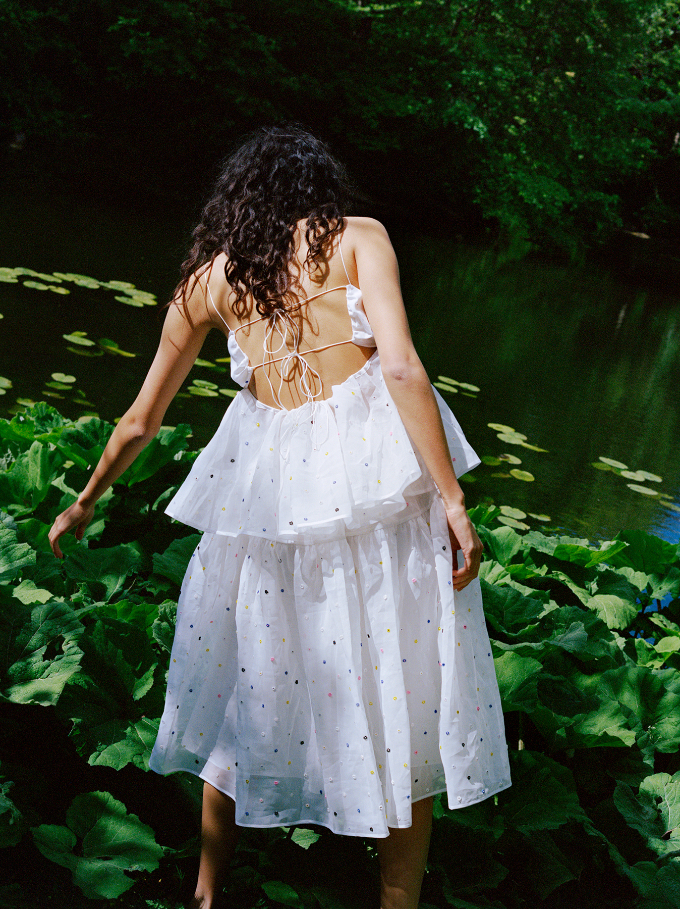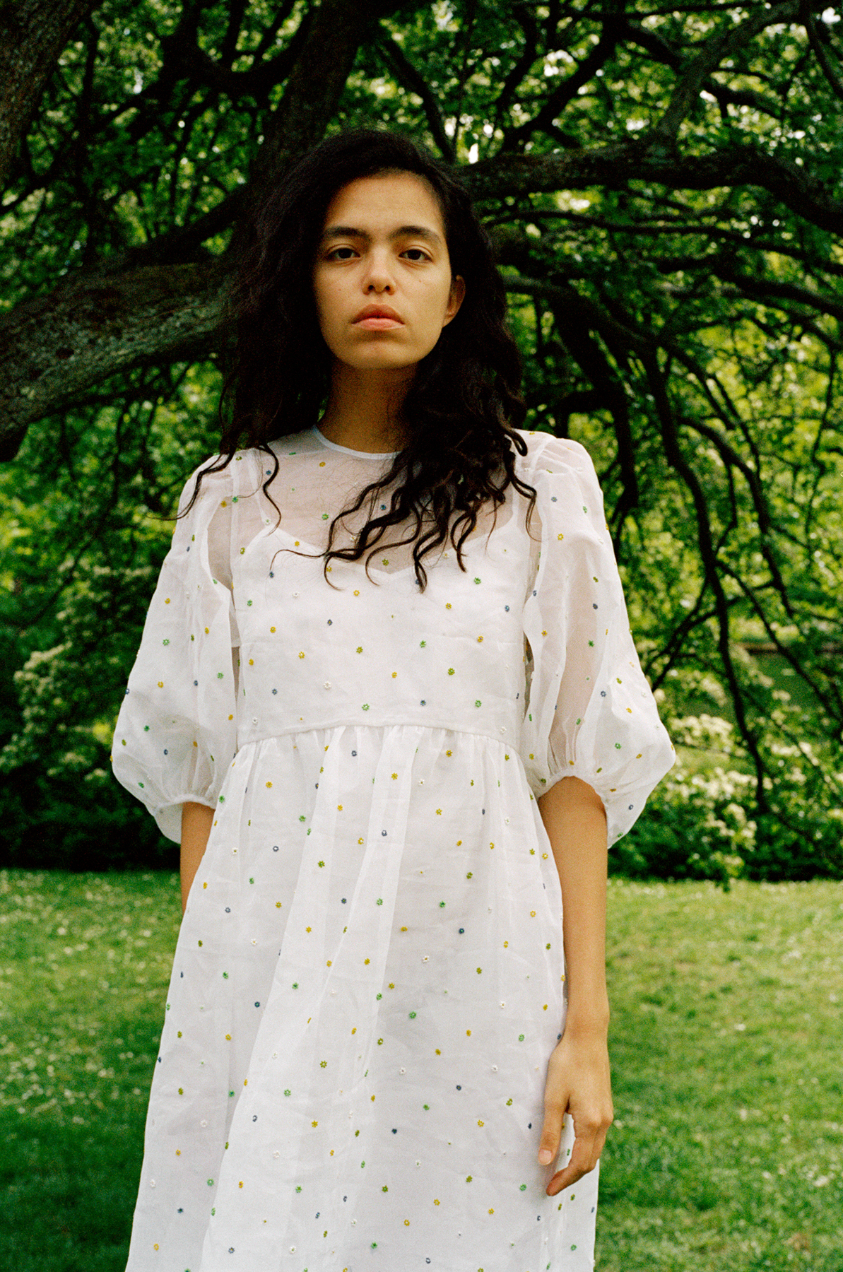 Although the clothes are lighter and less voluminous than the billowing baby doll dresses for which Bahnsen is known, the collection stays true to Bahnsen’s attention to detail and romantic silhouettes while using a fraction of the fabric. The result is a pared-back take on extravagant high-fashion, which is infinitely more wearable and comes with half the environmental guilt.