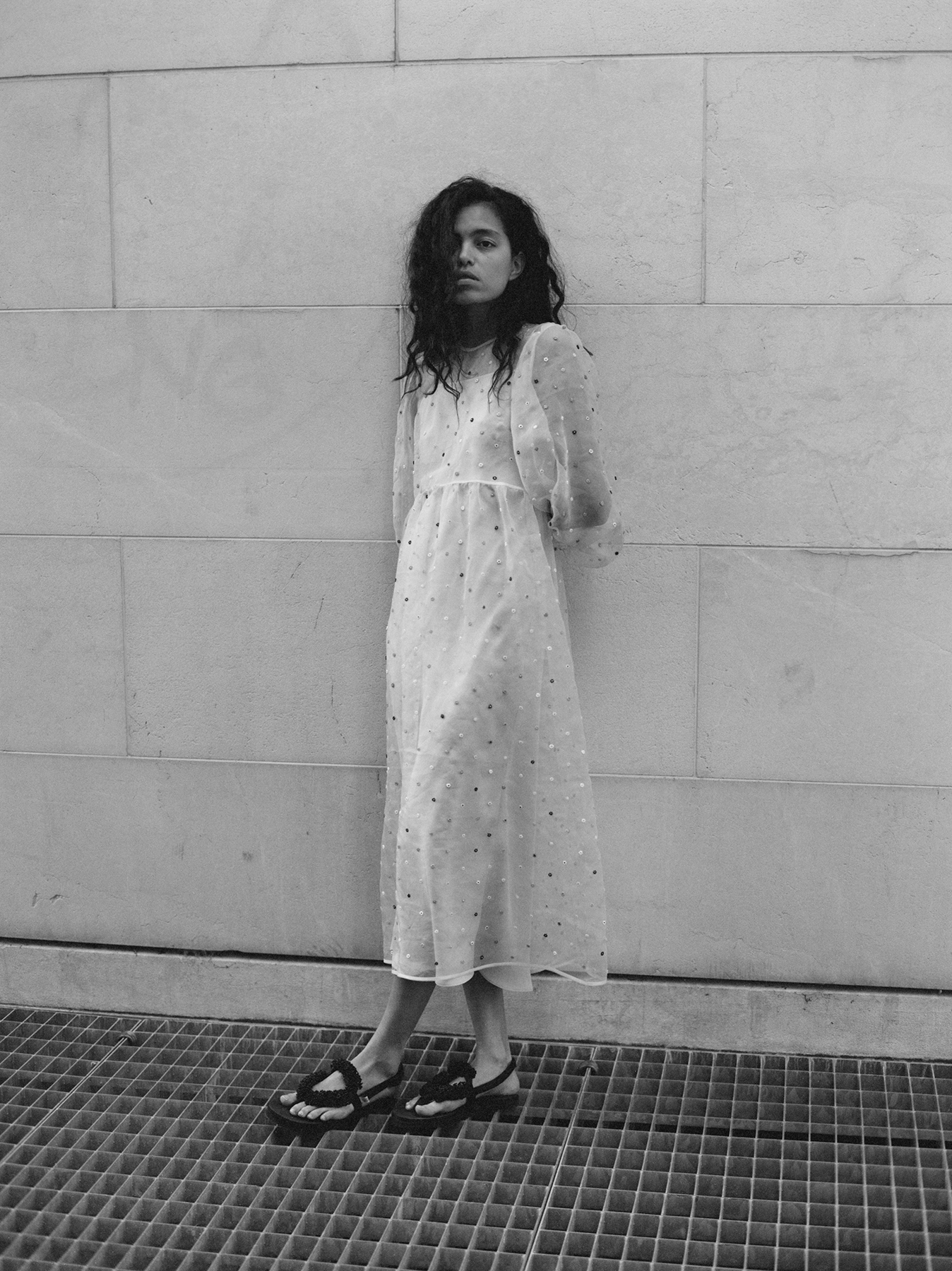 The first collection, featuring a top, one skirt, four dresses, two pillows, and a blanket, borrowed fabrics and techniques from seasons past, like haute-couture organdie from Switzerland and an elevated jacquard technique that alternates see-through and solid yarn to create a grid effect. Available to buy now, the collection will be added to with monthly drops of one-off pieces.