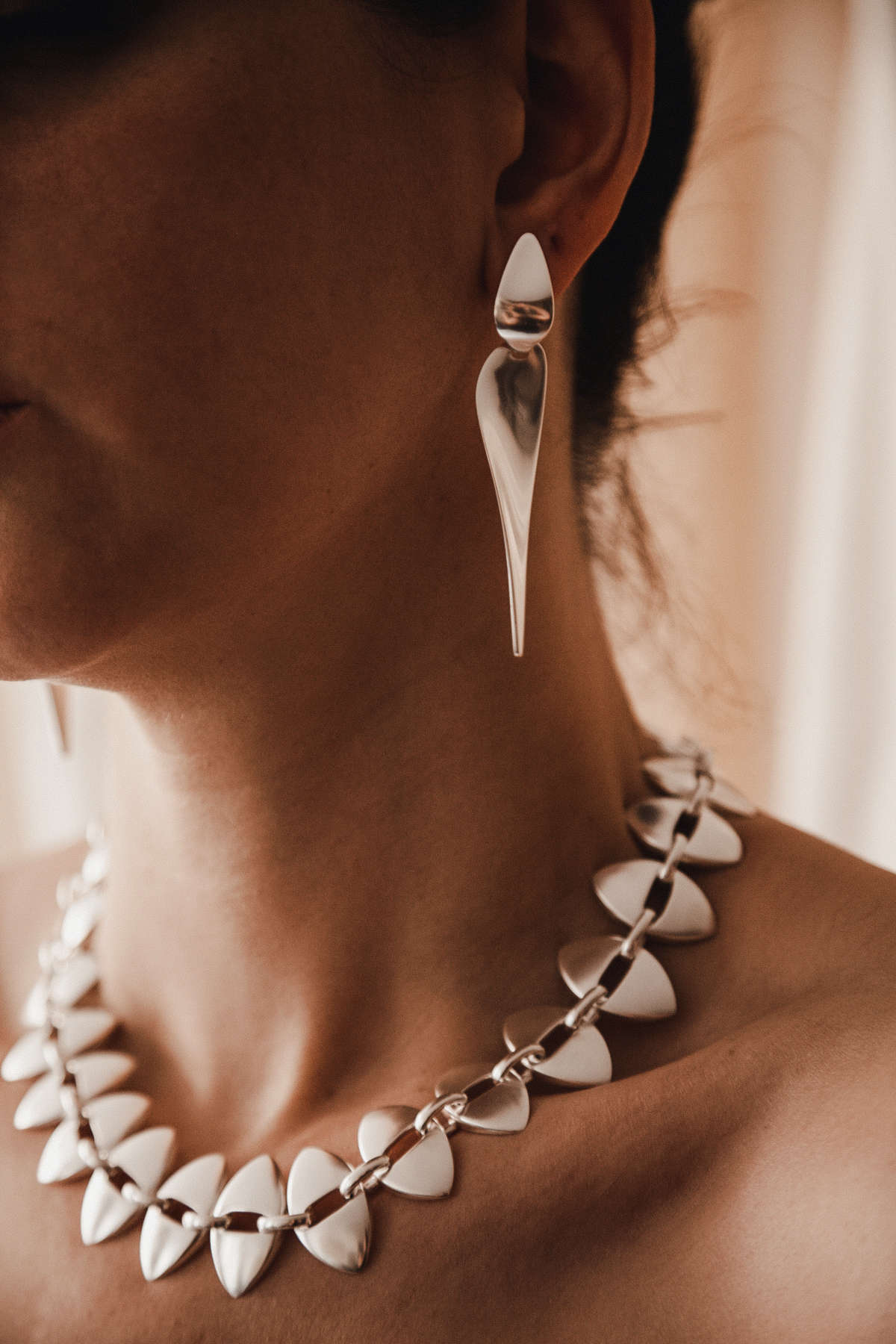 Nanna Ditzel’s jewelry work is characterized by organic shapes that complement the body, yet are still visually dynamic in a way that makes each piece stand out. They’re statement pieces that are somehow also ideal for every day wear. These are investment pieces that will remain stylish for life; the kind of pieces you’ll pass down to the next generation. These pieces are heavy and substantial, but they sit beautifully on the skin, somehow seemingly conforming to the lines of the wearer.
