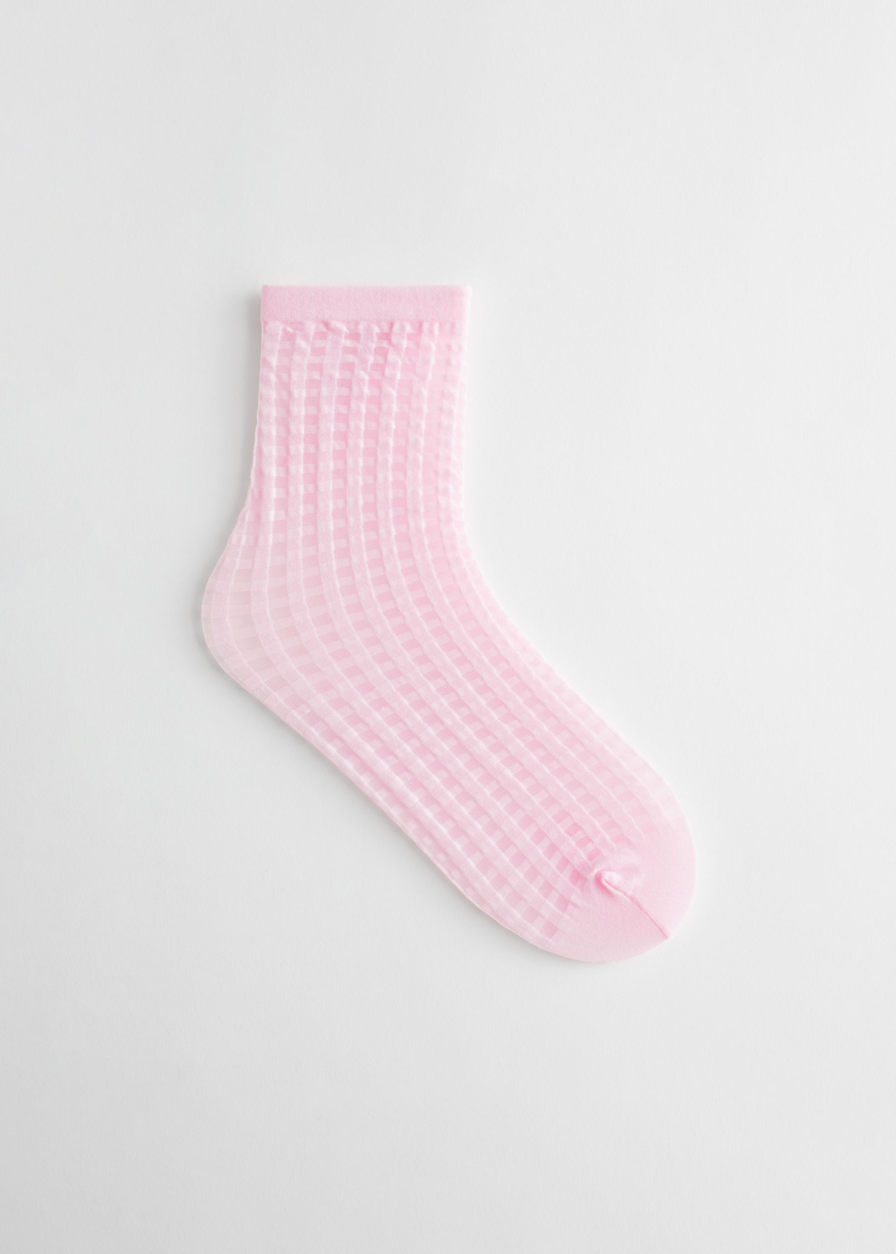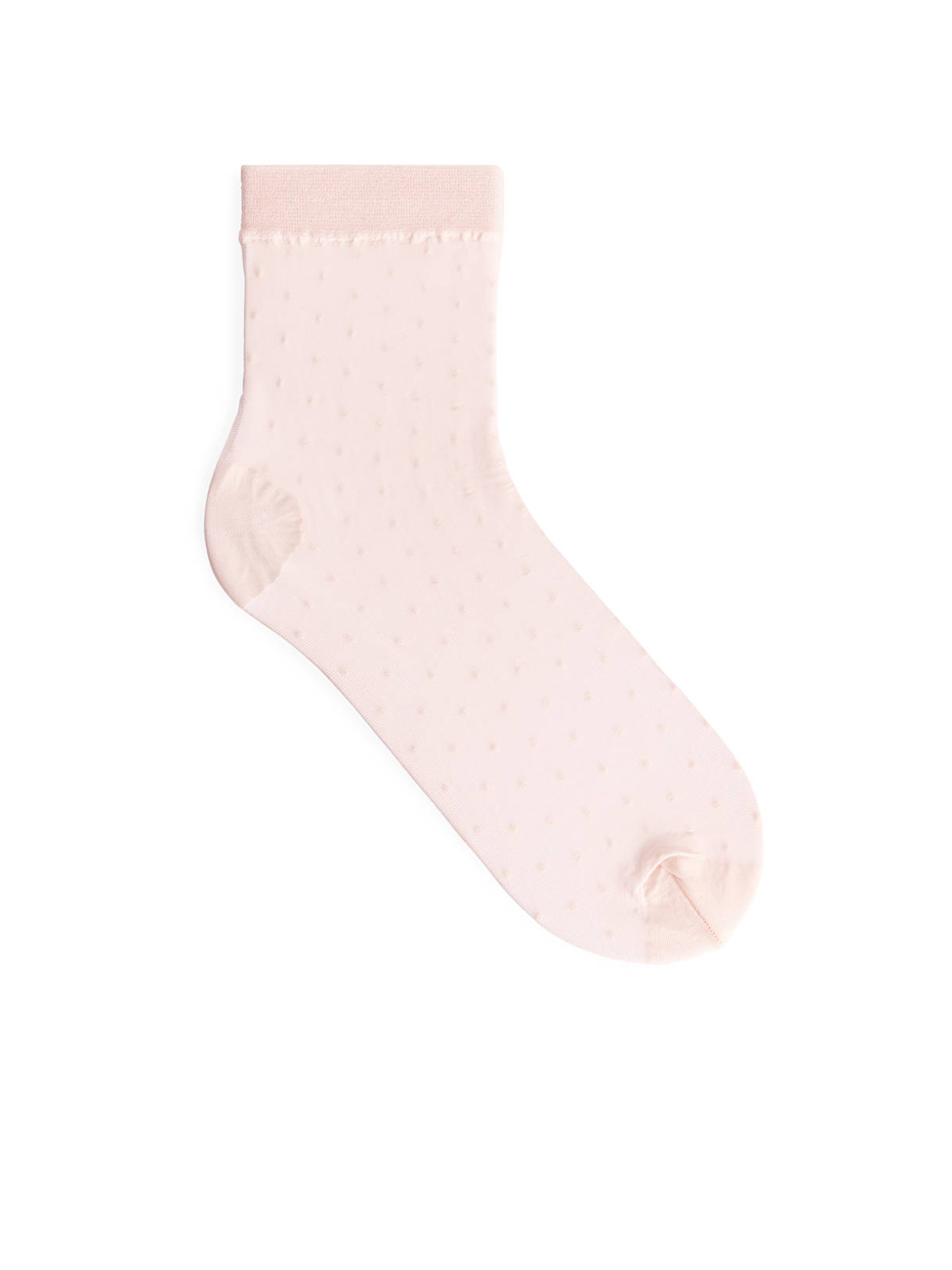 Sweet socks that are definitely great for dancing shoes and less so for walking boots. Baby pinks, glittery threads, and scallop trims are rife at & Other Stories – by no means a bad thing.
