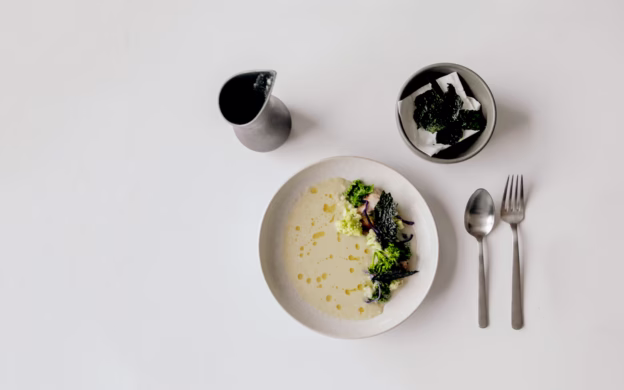Layer and mix your seven different kinds of cabbage in the bottom of your bowl, then pour the stock into the bowl along the side. This way you have a soup base with all your favorite kinds of perfectly cooked kale and cabbage in the middle.