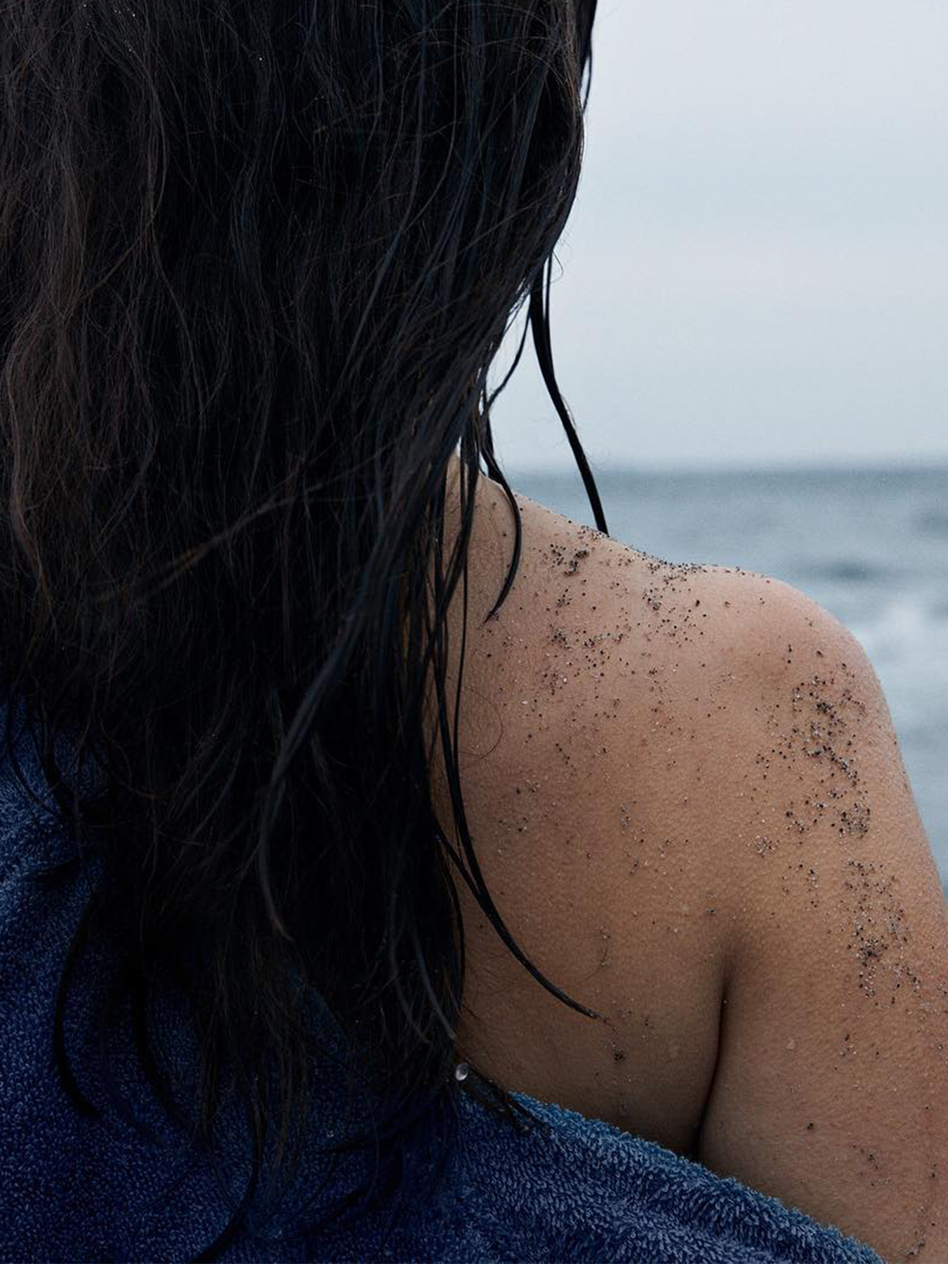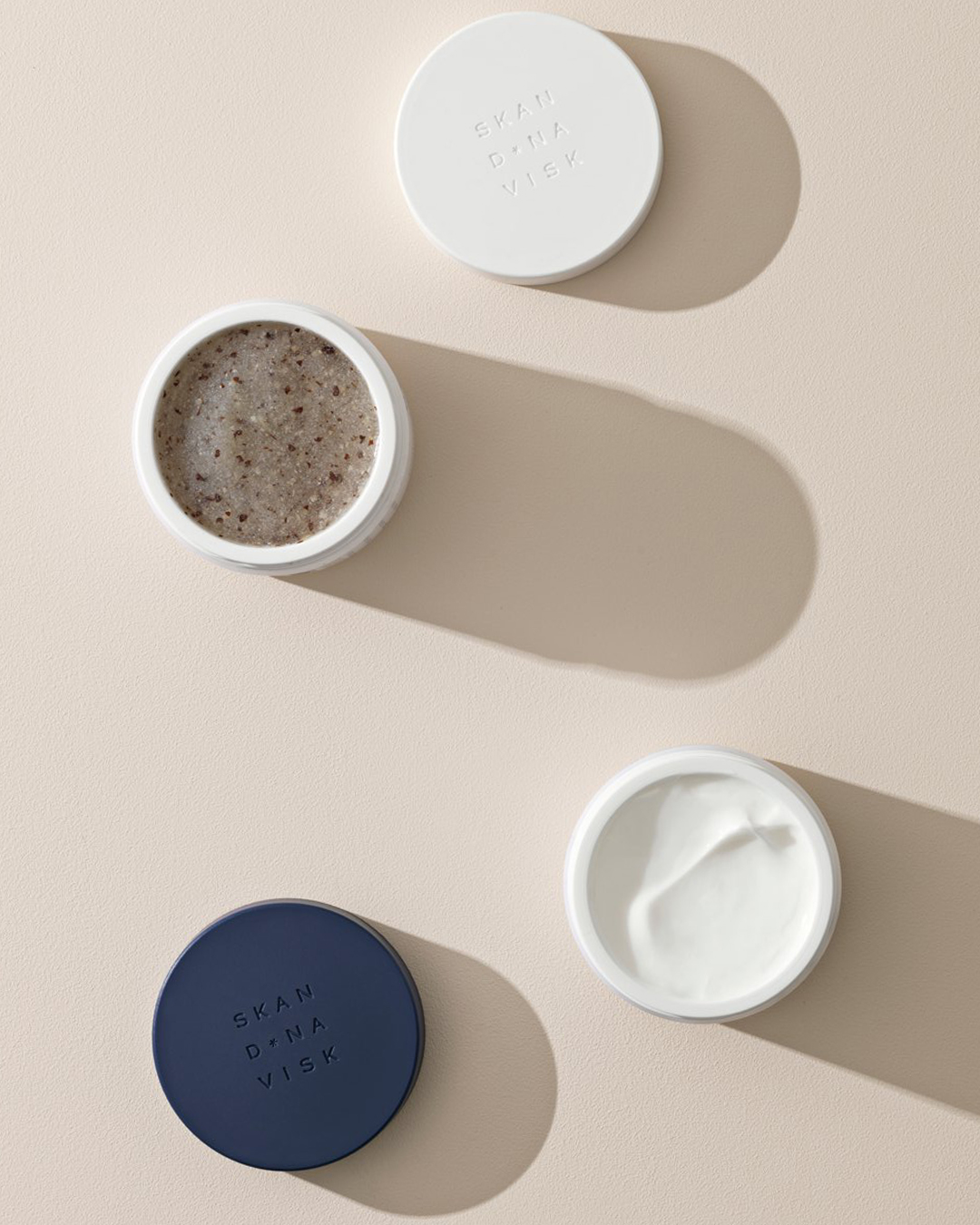 The scent is described as a “cold marine,” and that coldness really comes through. But it’s not a biting cold; it’s glassy and brisk. There are also notes of rugosa rosa and hawthorn, carried by from the shoreline where the Atlantic meets the Baltic. The body care is infused with rockweed, which restores the skin’s moisture levels. Using the body scrub and lotion feels like you’ve just taken a long dip in cold water; your skin has that same pricked, fresh feeling, where the water beads on your legs and slides off.