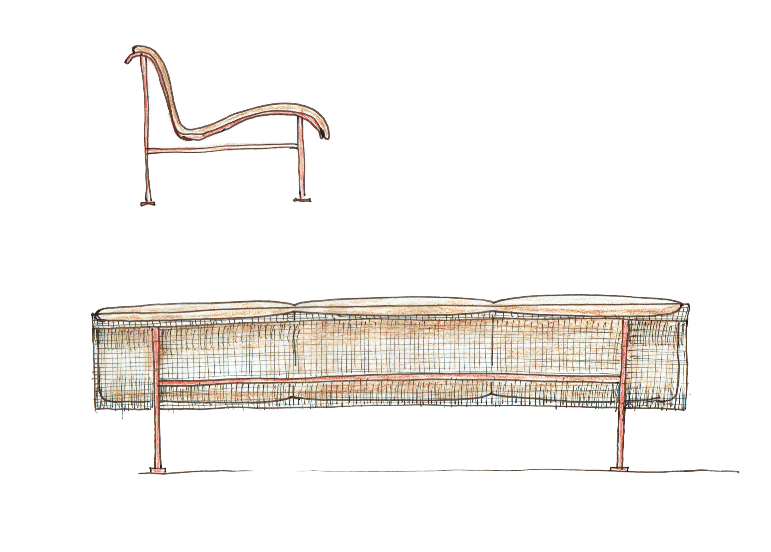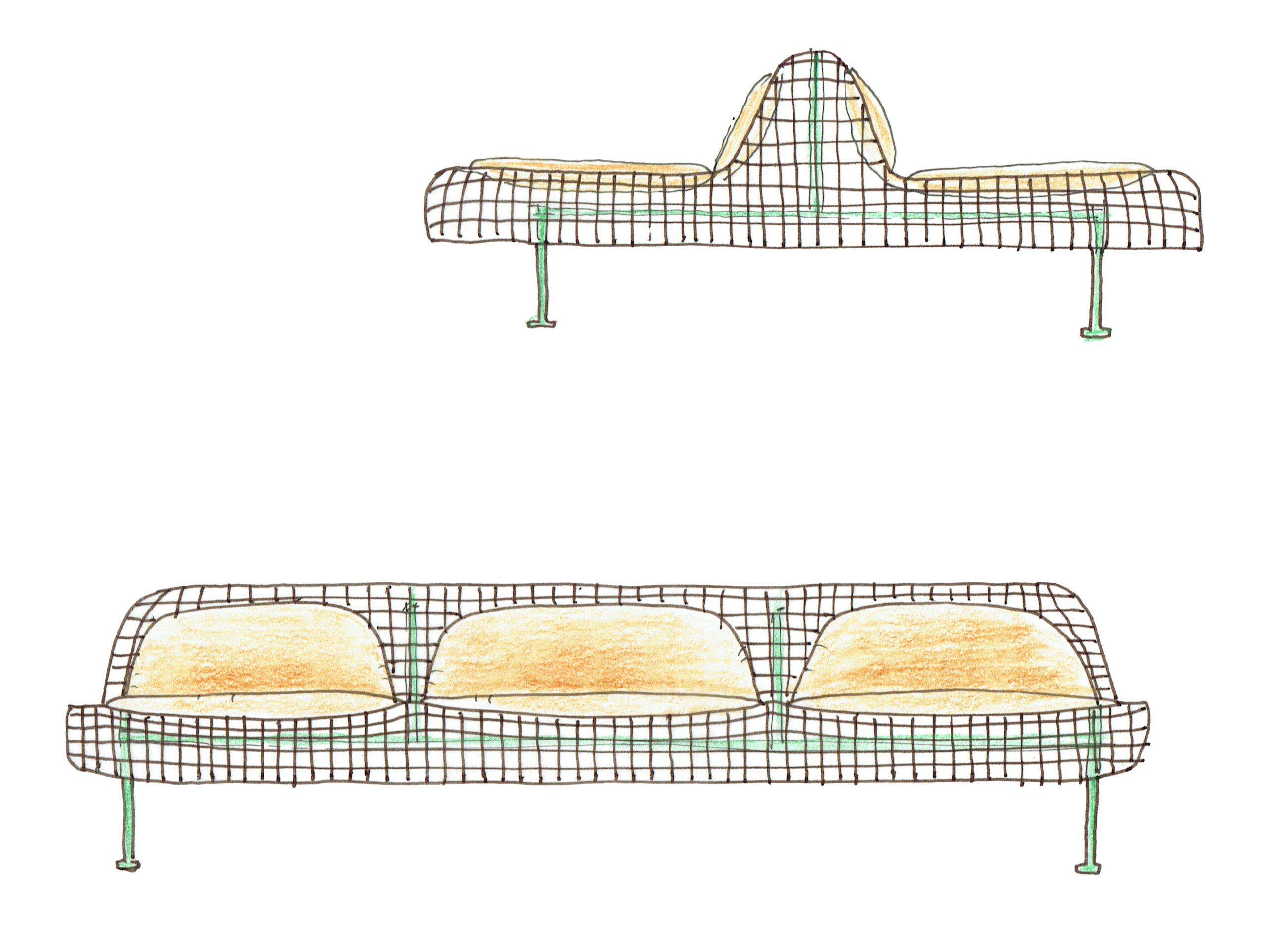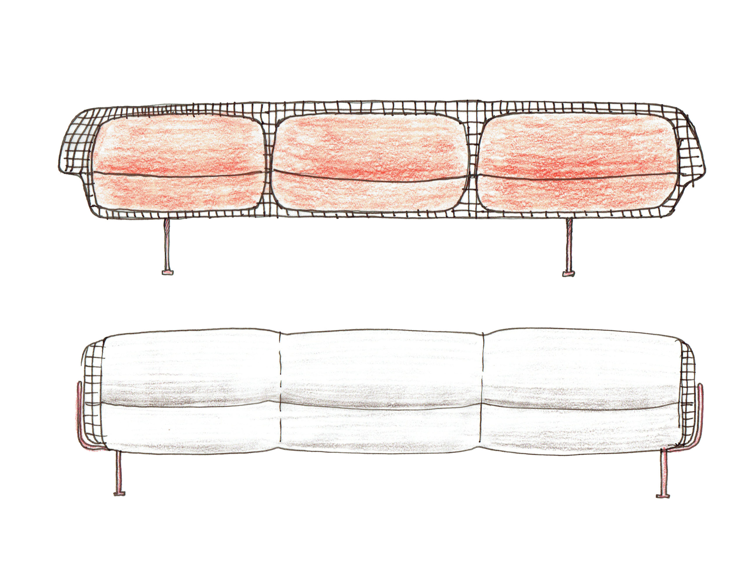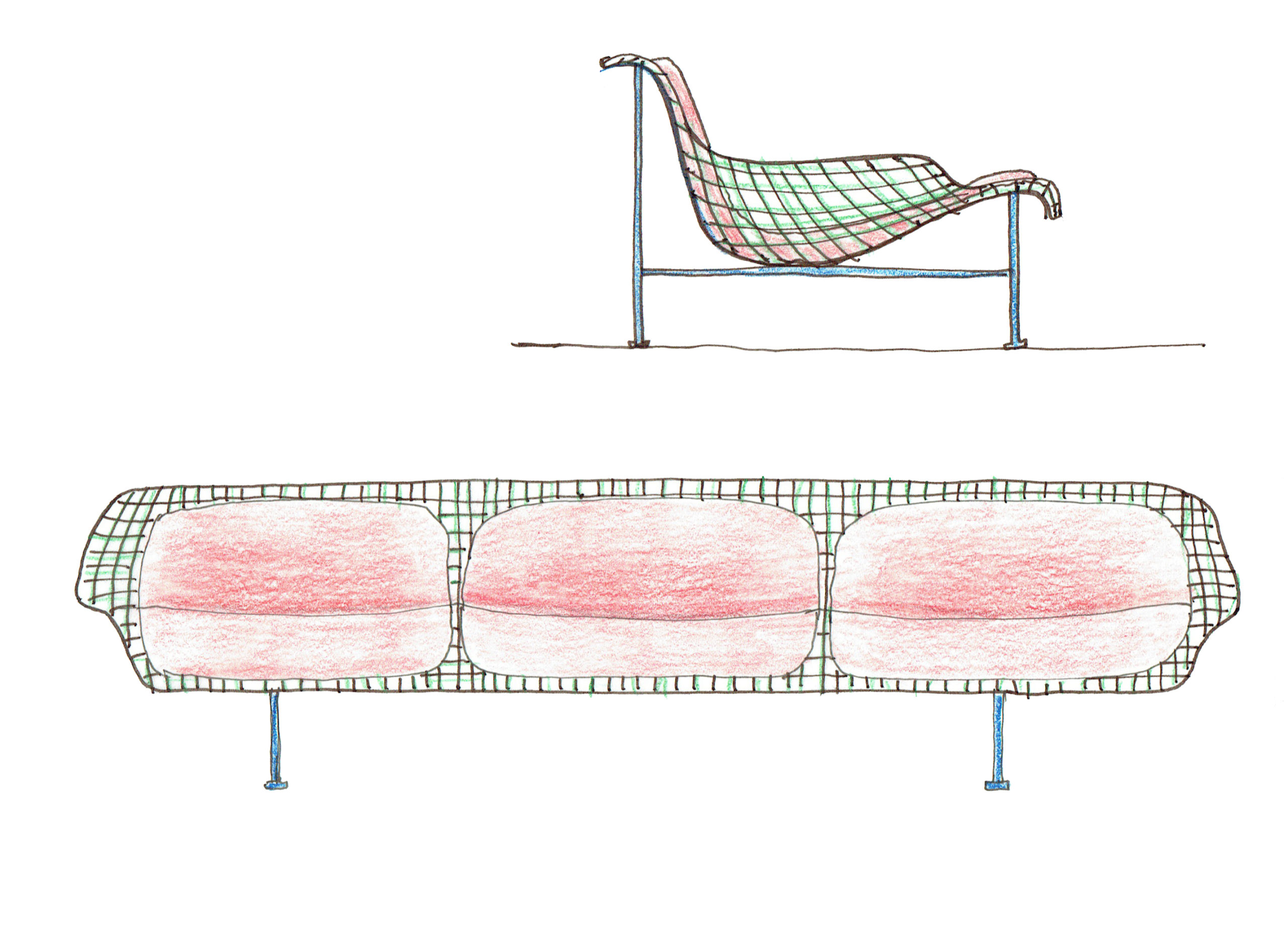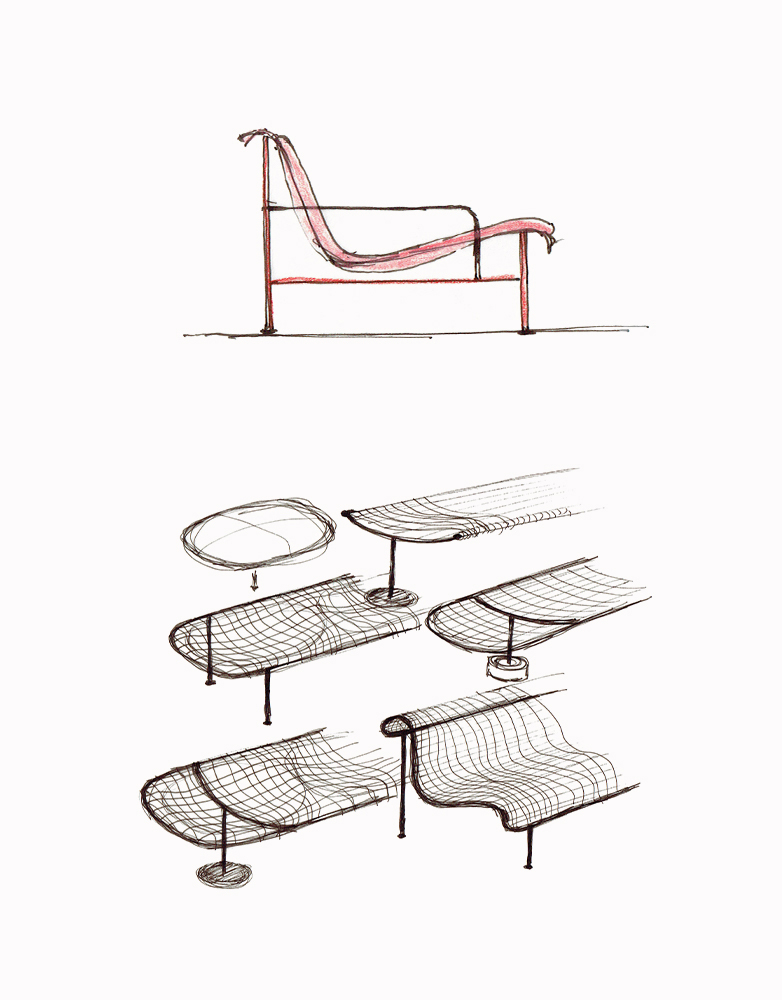 The Munch collection is a masterclass in simplicity as each piece consists of only three elements: a steel frame, a steel mesh, and wool textile pillows. All three elements have properties that enable function and while adding to the design of the furniture. The metal parts have been welded together and galvanized, making the collection robust and even approved for outdoor use – we would expect nothing less from a company like Vestre, who for 70 years created social, sustainable meeting places for millions of people and sustainable furniture with a lifetime guarantee against rust. The collection comes in three special colors, created especially for the collection by Norwegian color producer Jotun.