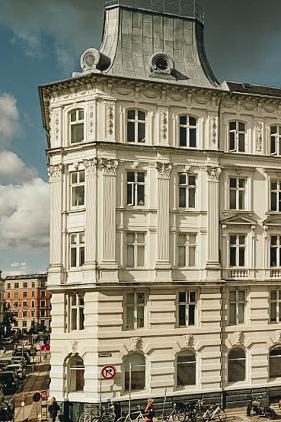 Just west from the bustling core of Copenhagen lies an area with a more open, airy feel, and large buildings to match the wider streets.
