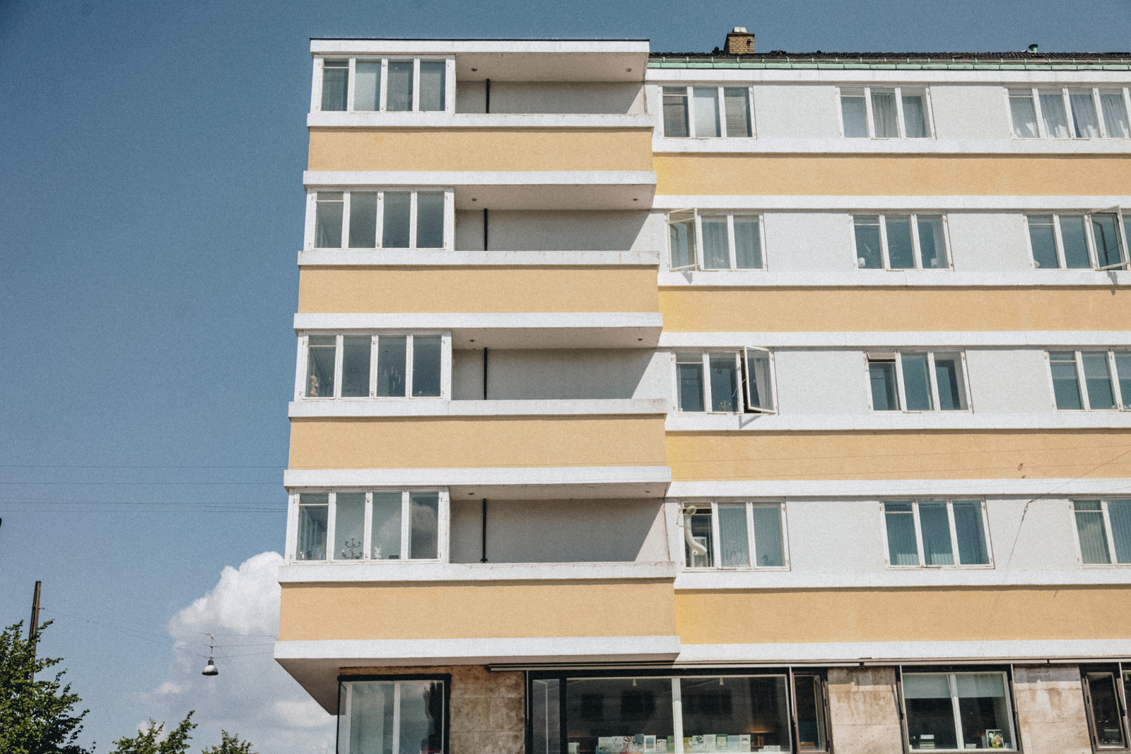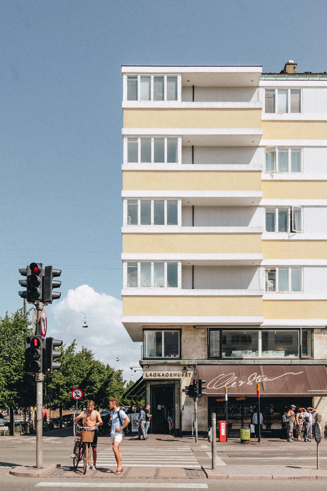 A full-block building facing a public square on one side and a canal on another, Lagkagehuset (literally “Layer Cake House”) was one of the first Modernist International Style buildings in Copenhagen. Its unadorned facade, with alternating horizontal bands of white and yellow, inspired the playful name.